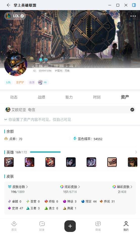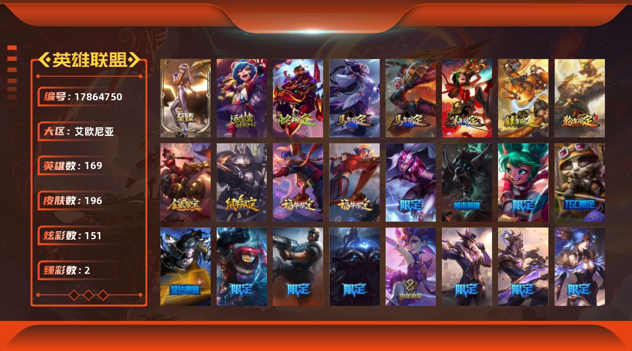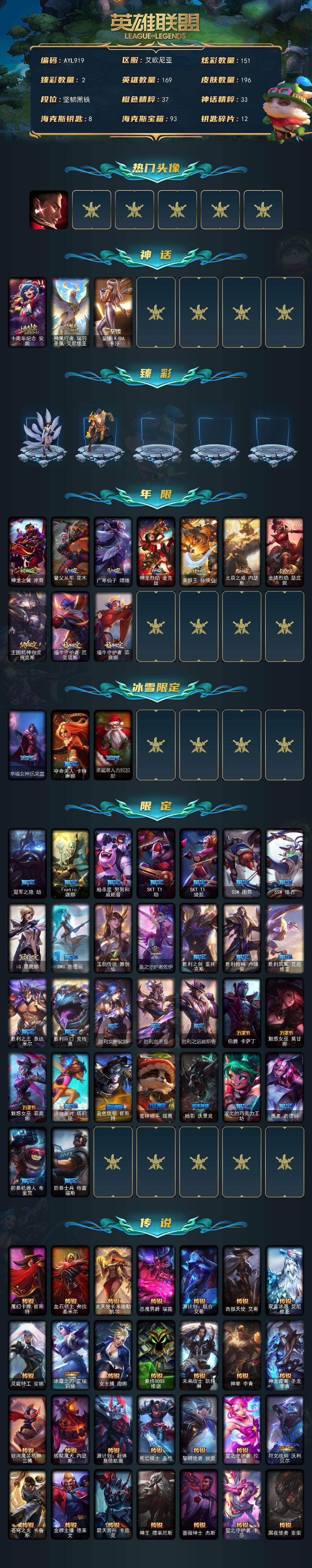 [17864750]未定级段位-169英雄-196皮肤-151炫彩-0终极-3神话-44限定-31传说-47史诗