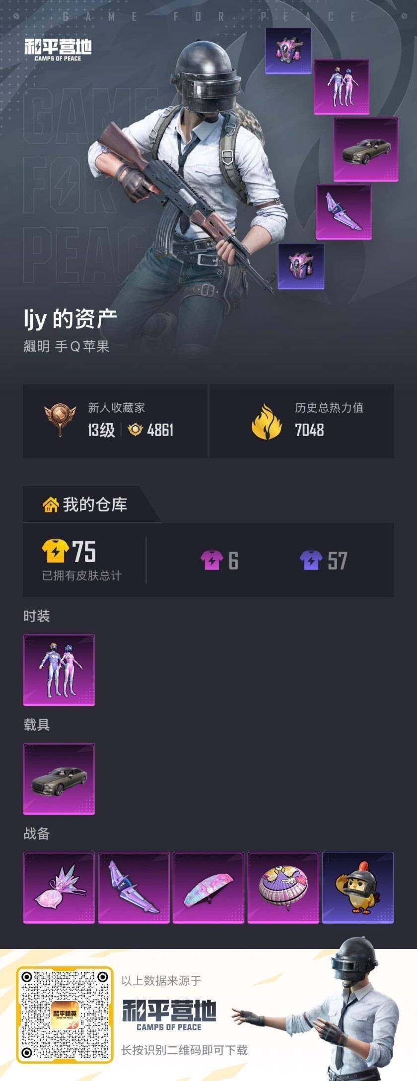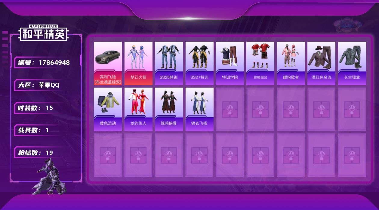 [17864948]苹果 手Q-1粉装-0特效枪-1载具-2粉色飞行器-7048热力值-1王牌印记-15套装-19枪皮