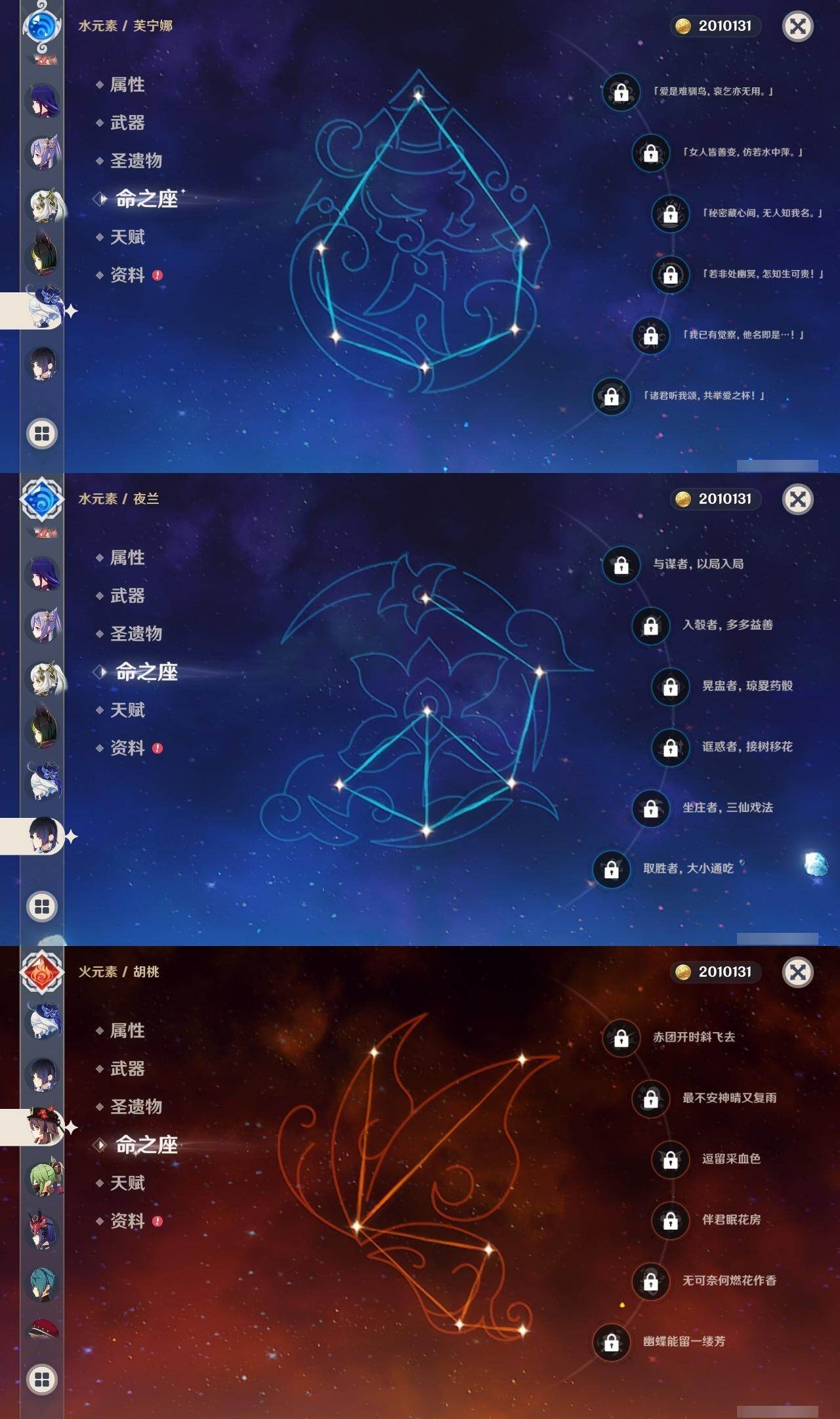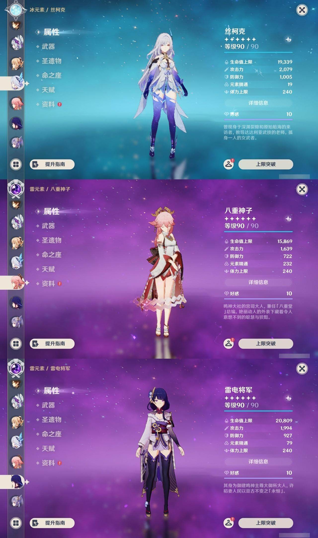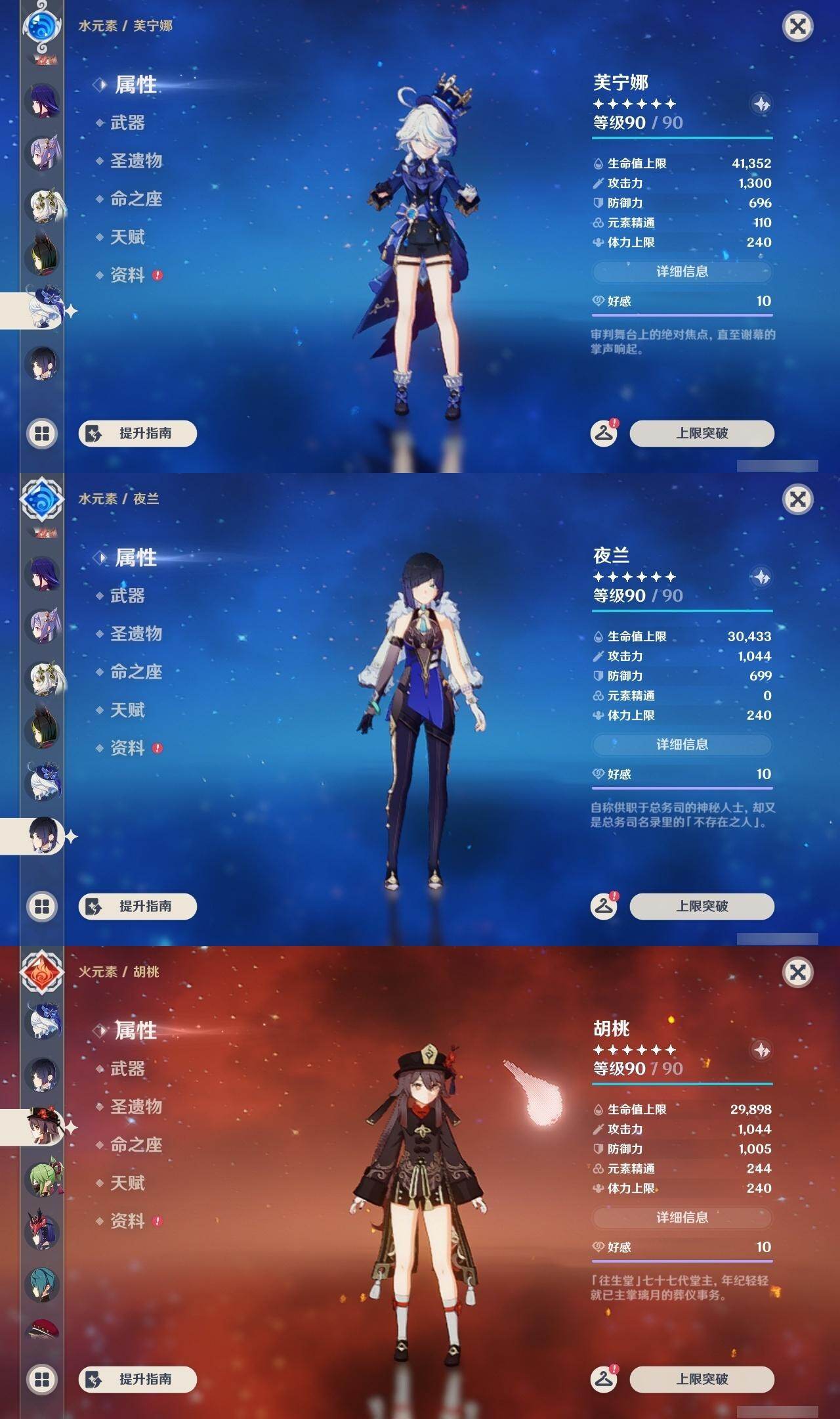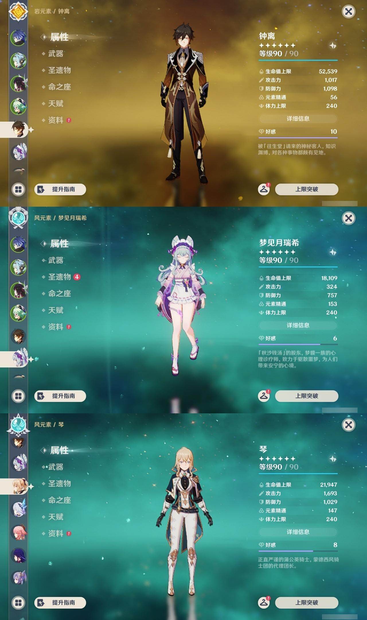 钟离,琴,八重神子,雷电将军,刻晴,胡桃,迪卢克