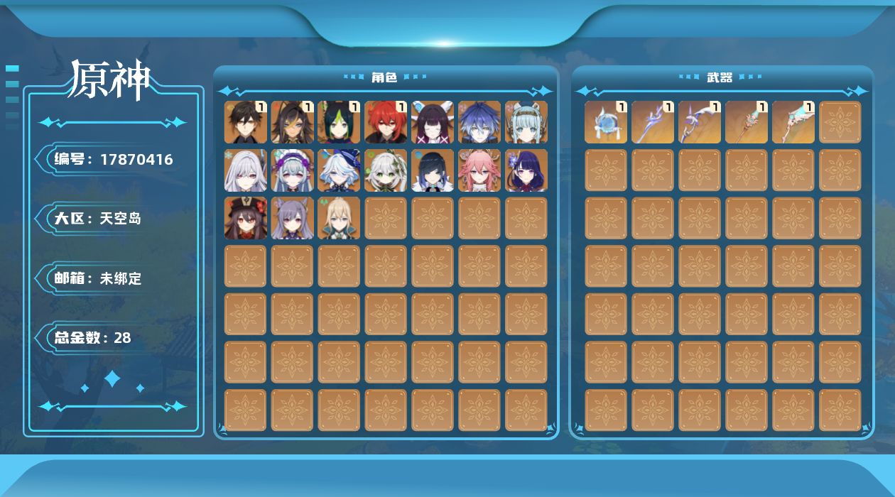 [17870416]59级/28黄/女主/17个五星角色/7个五星武器