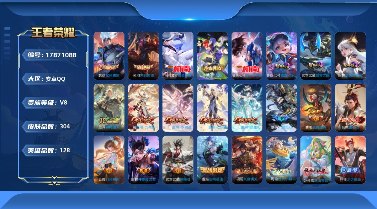 [17871088]安卓Q-V8-304皮肤-2典藏皮肤-3珍品传说-12传说-59史诗