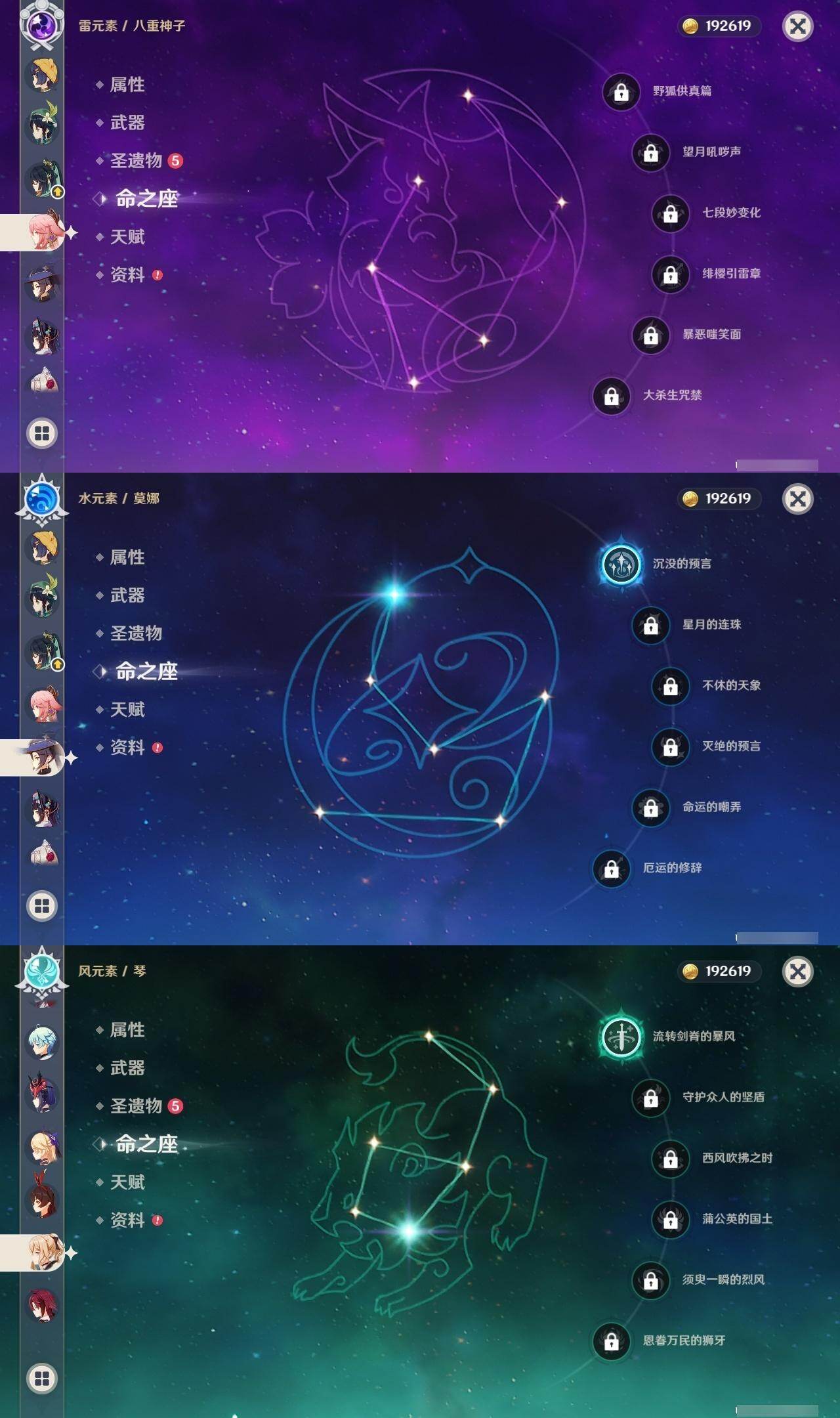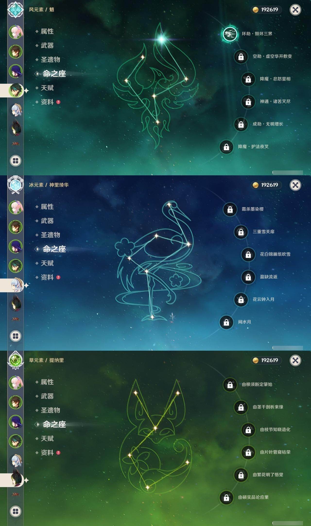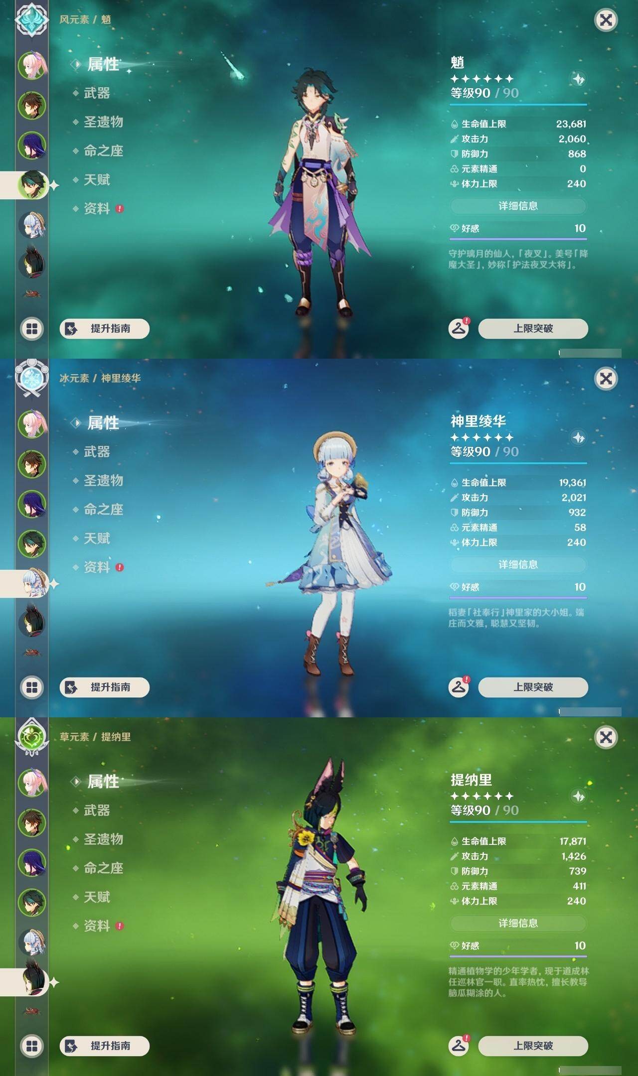 0命闲云,0命迪希雅,0命提纳里,0命八重神子,0命雷电将军,0命神里绫华,0命钟离,0命胡桃,1命魈,0命宵宫,0命温迪,1命达达利亚,0命珊瑚宫心海,1命七七,1命琴,1命莫娜,2命迪卢克,精1裁断,精1圣显之钥,精1神乐之真意,精1冬极白星,精1雾切之回光,精1和璞鸢,精1天空之脊,精2天空之翼,精1天空之卷,精1风鹰剑,精1狼的末路