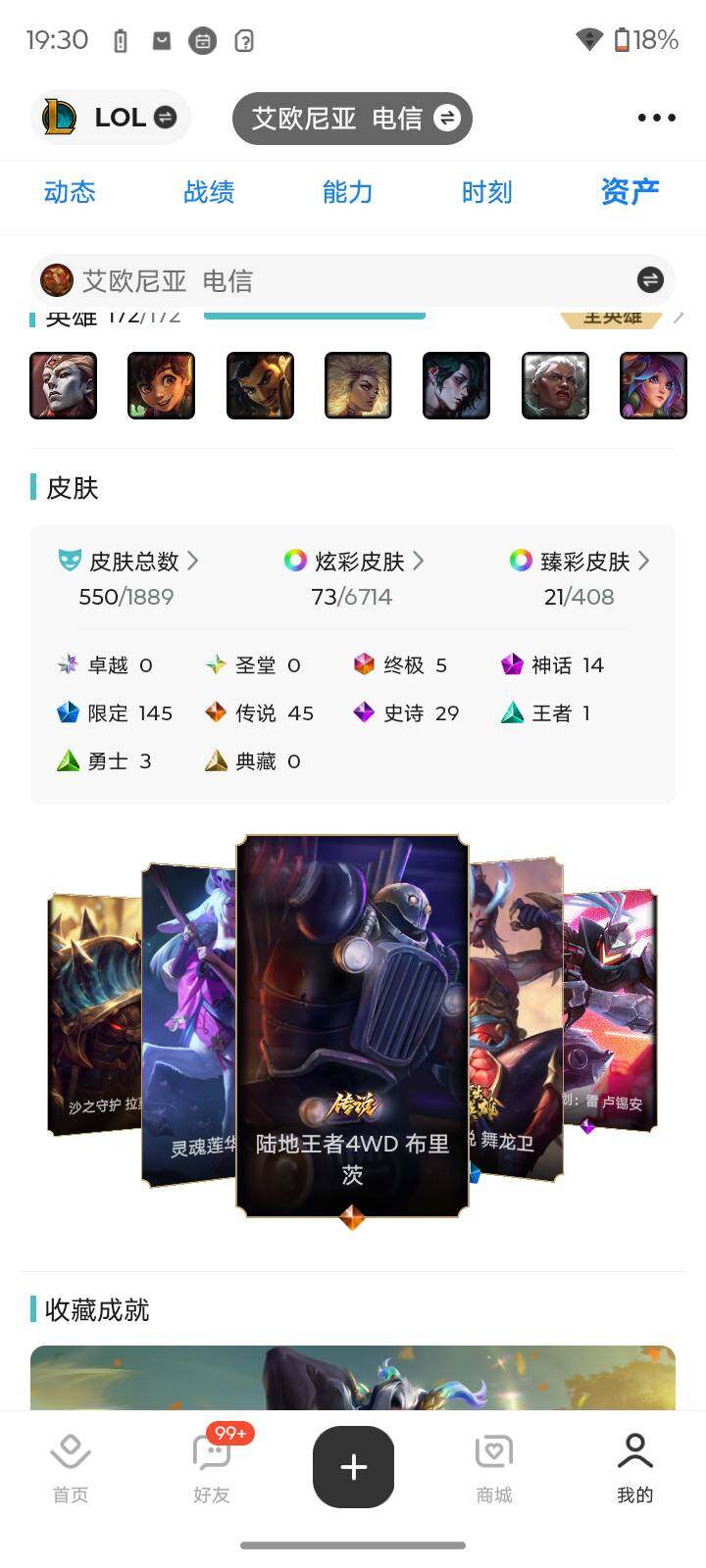[17886296]【店主推荐捡漏号】黄金段位-172英雄-550皮肤-73炫彩-5终极-14神话-145限定-45传说-29史诗