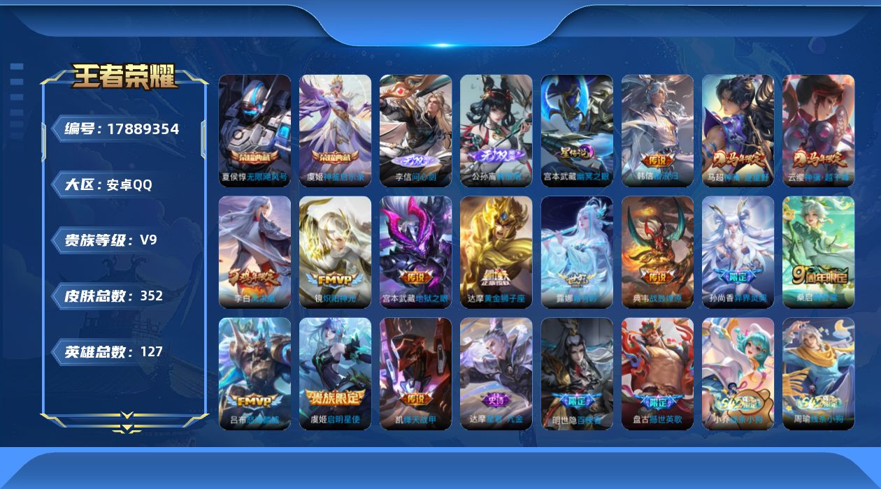 [17889354]安卓Q-V9-352皮肤-2典藏皮肤-2无双-14传说-104史诗
