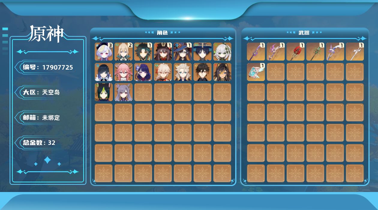 [17907725]59级/32黄/女主/16个五星角色/8个五星武器