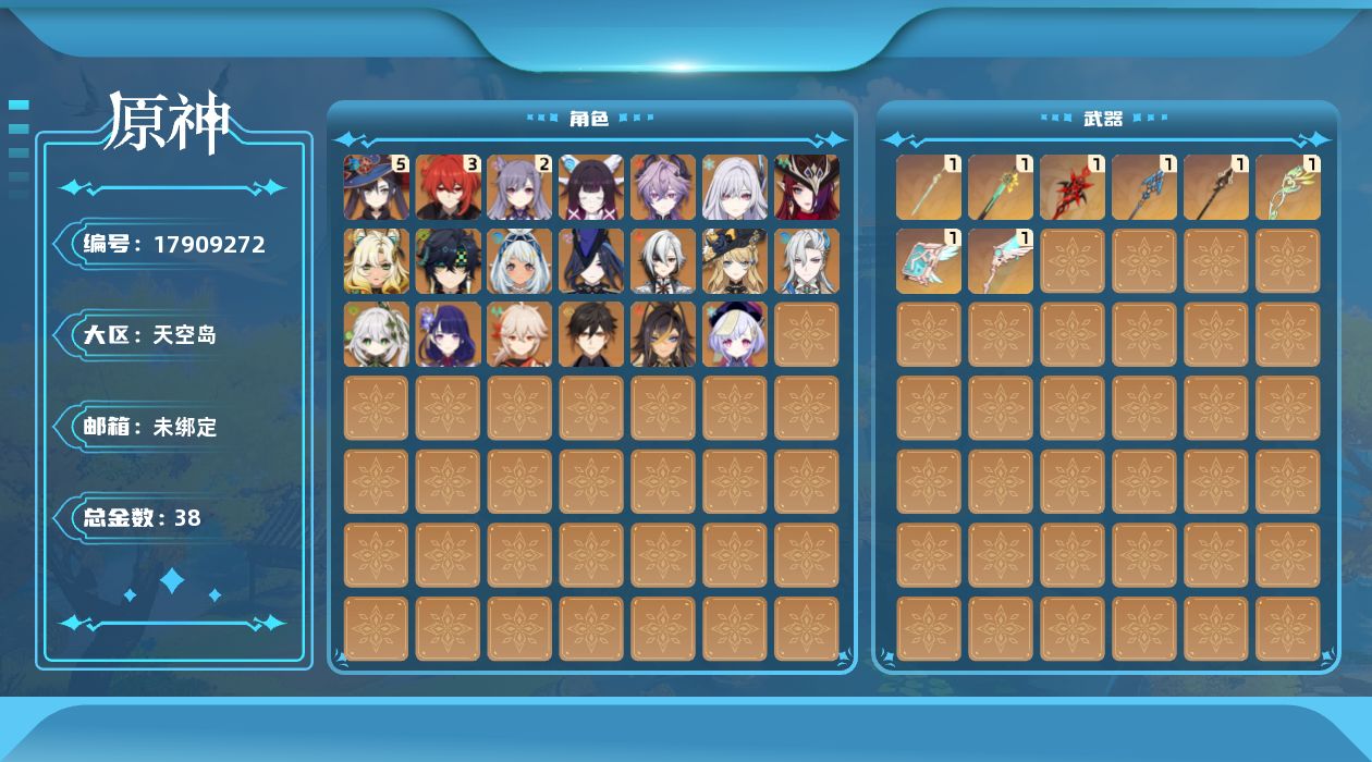 [17909272]59级/38黄/男主/20个五星角色/8个五星武器