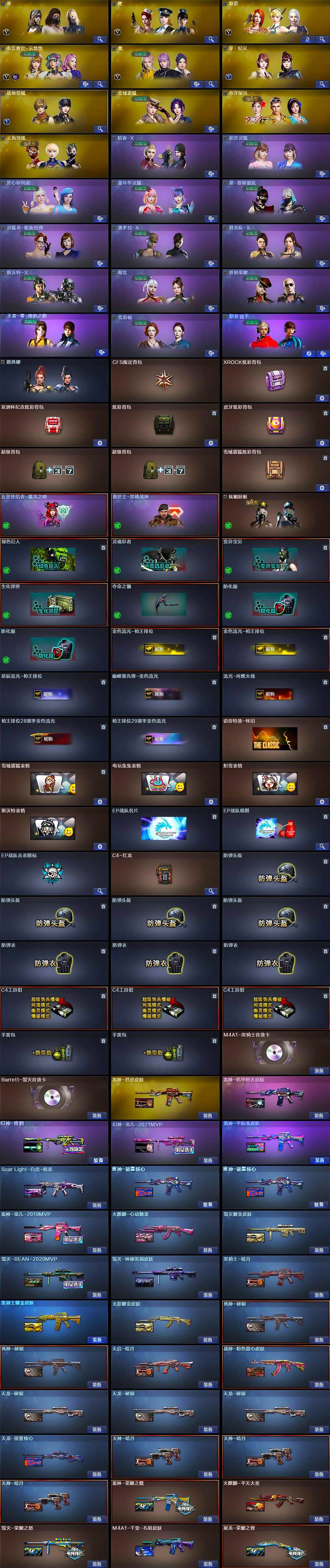 - [14578680]安徽一区-127V-12王者-0炫金 【传说角色】:传说星骇,传说影煞 【热门武器】:QBZ03-金色蔷薇,Scar Light-白虎,M200-幻神,柯尔特-荣耀世冠白鲨2023,金色蔷薇-古蛇迷踪,修罗-古蛇迷踪,M200-竞技荣光,死亡之眼,汤姆逊-烈龙*5,RPK-盘龙*6,加特林-炼狱,斯泰尔-蝴蝶*2,MK5-炽火炎龙,USP-雷暴,沙鹰-修罗*5,炽芒蝶刃*3,炽芒蝶刃-荣耀世冠白鲨2023 皮肤*2,黄金猫猫手套-白鲨*2,金刚伞 【音效卡】:屠龙-动感闪耀 音效卡,M200-幻神音效卡,M4A1-雷神音效卡,Barrett-毁灭音效卡,AWM-裁决音效卡,枪娘语音包-凯萨林 【皮肤】:幻神-丹凤,幻神-宠儿-2021MVP,幻神-CFS2022,M200-幻神-荣耀世冠白鲨,幻神-电流骇客 皮肤,幻神-星火小队签名臻藏版 皮肤,Scar Light-白虎-暗星,裁决-流光秘银,雷神-暗月,雷神-荣耀之魄,雷神-R.LGD-CFPLS18冠军,雷神-CFS十周年纪念版 皮肤,雷神-航星皮肤,雷神-源计划2.0专属 皮肤,火麒麟-平天大圣,火麒麟-百城,火麒麟-心动糖果,毁灭-荣耀之怒,毁灭-星空,毁灭-风暴,AK47-B-常胜将军-曹操,AK47-B-常胜将军-孙权,炼狱-星空,炼狱-奇幻宇宙万象,屠龙-荣耀之锋,屠龙-星火燎原,屠龙-春桃 皮肤,擎天-冠军之击,炽芒蝶刃-荣耀世冠白鲨2023 皮肤*2 【角色】:樱,炫,春,鹰,华,战地猎狐,王者凌霄,王者涂鸦,王者玲珑,王者-魅影,王者玲珑-小乔,蛇隐宗,奇洋探员,乔伊教练,修道士,云海玲珑,炽天使,暗夜-X,初恋灵狐,芳心审判者,飞虎队-X,嘉年华灵狐,娟娟,兰妹妹,猎狐者-追月,灵动武士,灵狐-花神,灵狐者-X,灵狐者-七夕宝贝,灵狐者-职业经理,龙儿-小淘气,麻雀,曼陀罗-X,曼陀罗-礼服,玫瑰花神,萌儿,潘多拉-X,潘多拉-甜心教官,青霞仙子,蛇姬,斯沃特-X,蜀雪,铁骑荣耀,兔囡囡,维纳斯,新灵狐者,夜玫瑰-幻能朋克,樱-战斗天使,游珑儿 【人偶武器】:天龙-曼陀罗,火麒麟-灵狐,迷你钢铁终结者*2,迷你救赎猎手,MK5-炽火炎龙,异变清道夫-蛇影双骄,斯泰尔-蝴蝶*2,MAC-10-千针棘鲨,AWM-灵狐-15周年嘉年华,迷你深渊冰龙,迷你裂空之翼*4,迷你牛魔王,迷你波特博士*5,