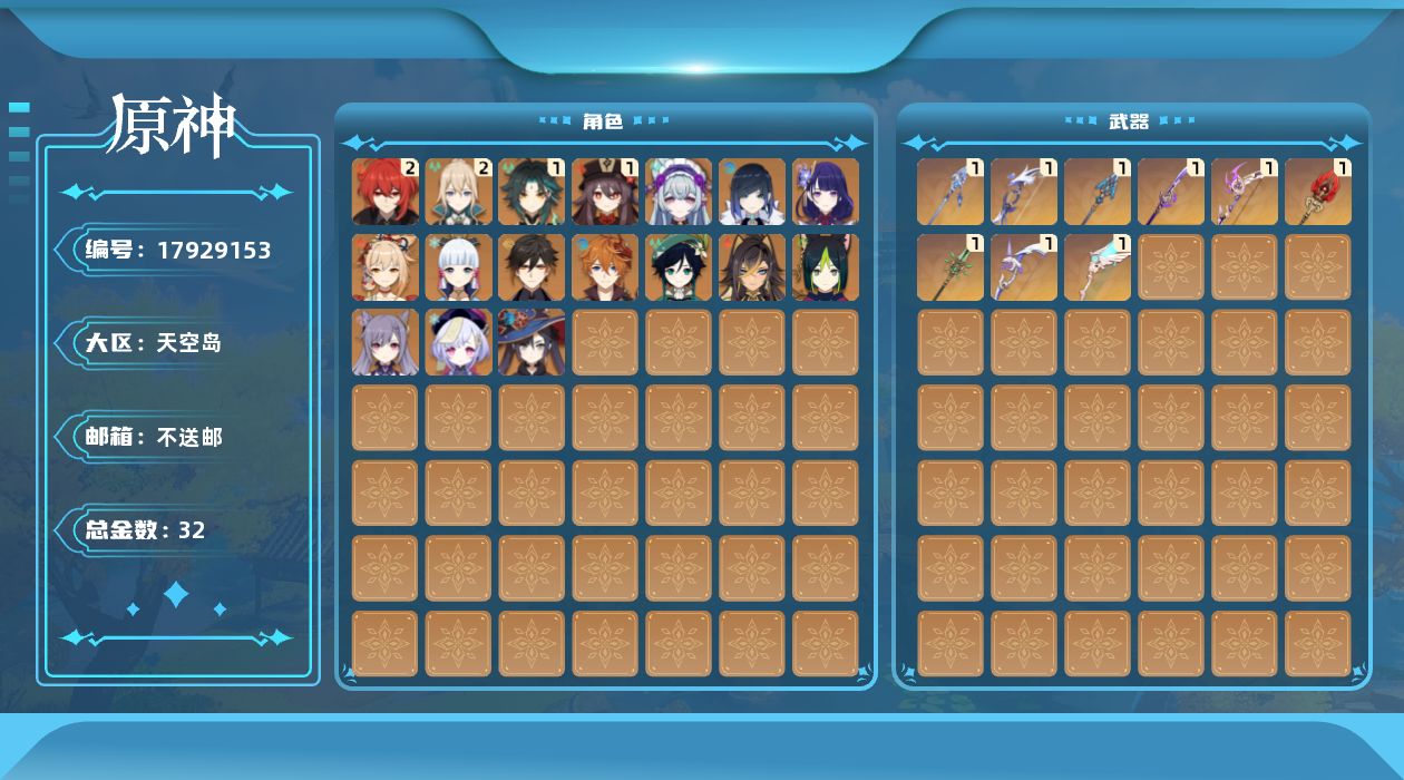 [17929153]58级/32黄/女主/17个五星角色/9个五星武器