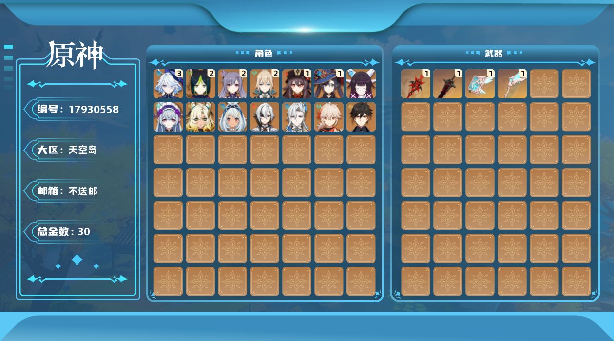[17930558]59级/30黄/女主/14个五星角色/5个五星武器