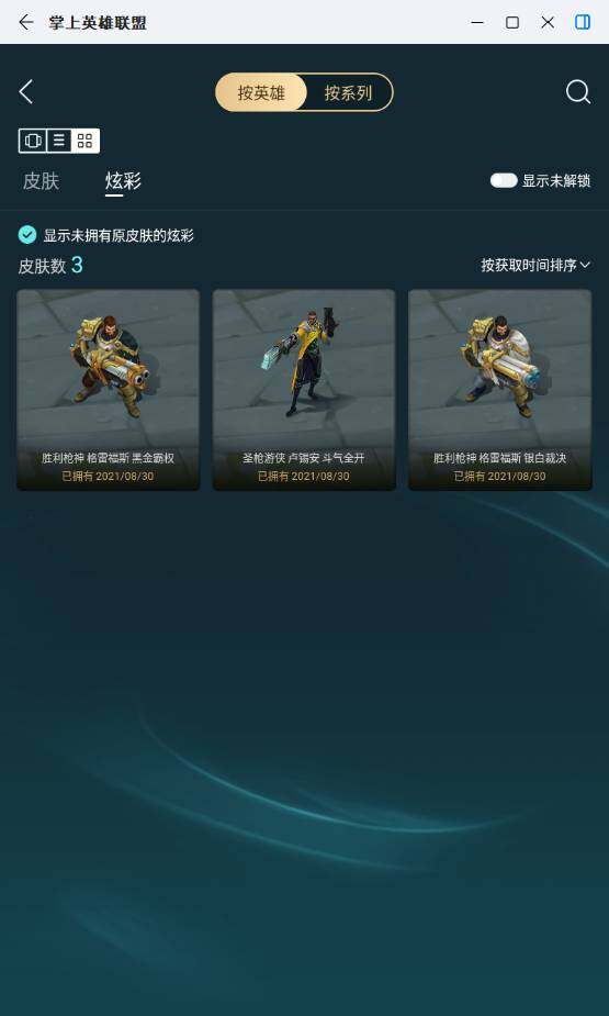 【限定皮肤】:冠军之刃锐雯,冠军之刃锐雯2016,暗杀星慎,星之守护者伊泽瑞尔,胜利之树茂凯,胜利枪神格雷福斯,胜利女神奥莉安娜,蒙多蒙多,都铎王朝图奇,防暴天使凯尔
