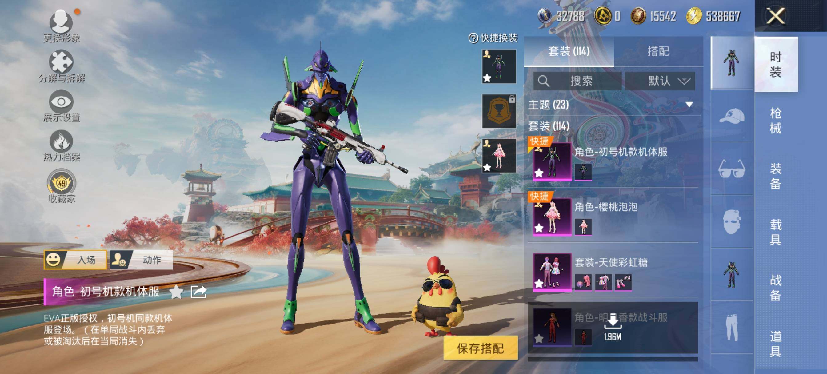 【粉色套装】:粉装-天使彩虹糖,角色-初号机款机体服,角色-樱桃泡泡