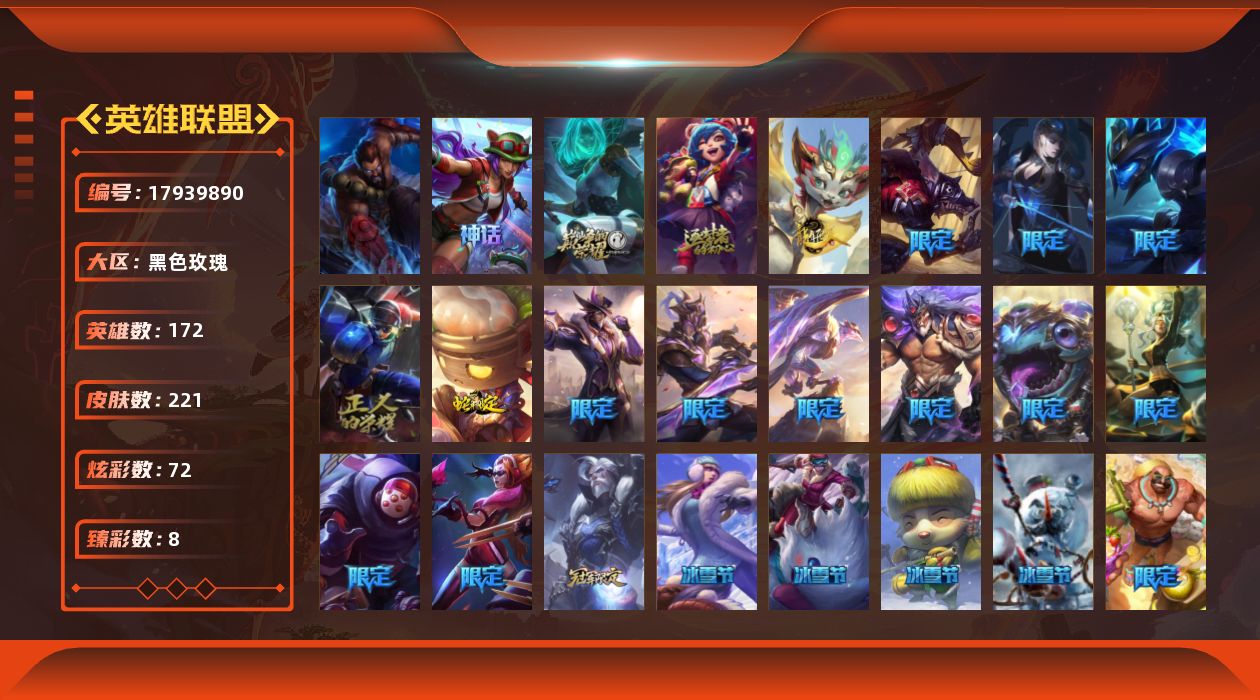 [17939890]可二次【特价出售/店主推荐】未定级段位-172英雄-221皮肤-72炫彩-1终极-4神话-22限定-21传说-44史诗