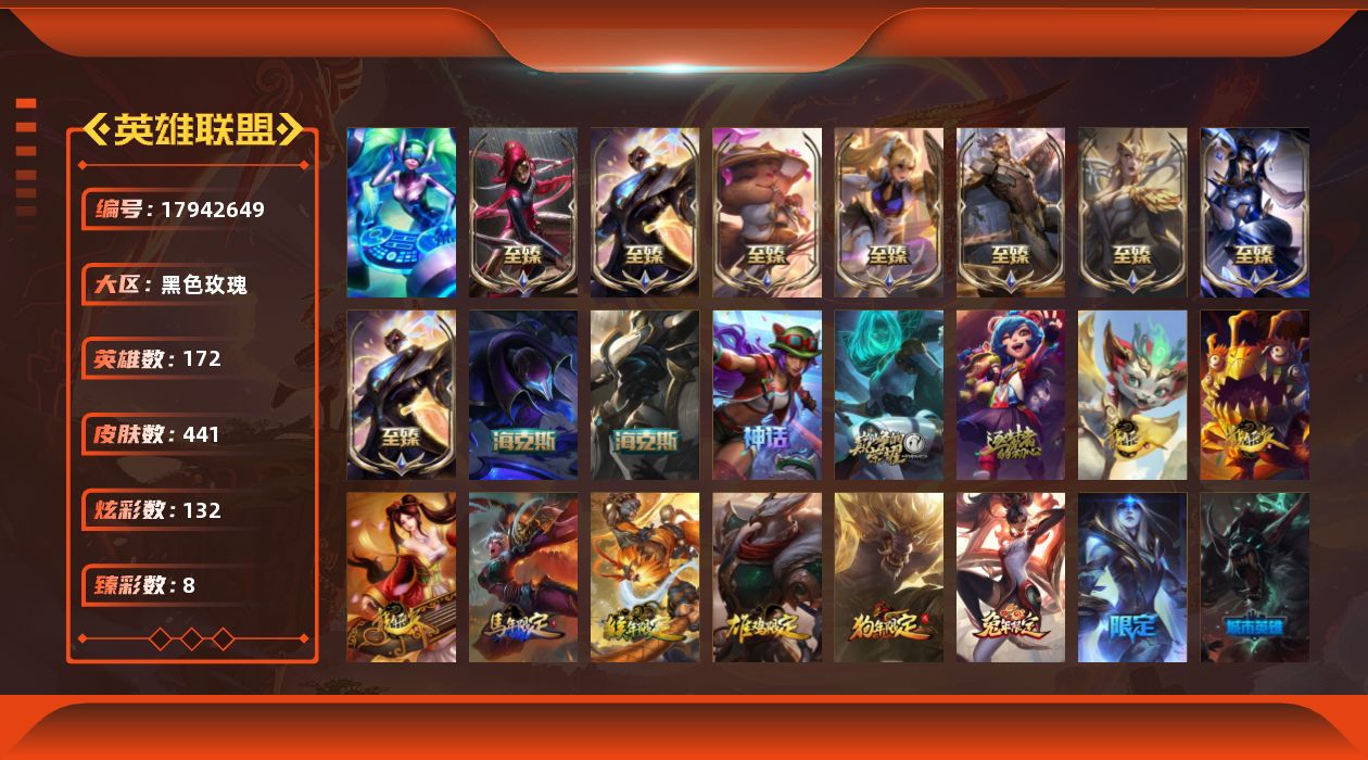 [17942649]【店主推荐捡漏号】黄金段位-172英雄-441皮肤-132炫彩-1终极-13神话-71限定-44传说-108史诗