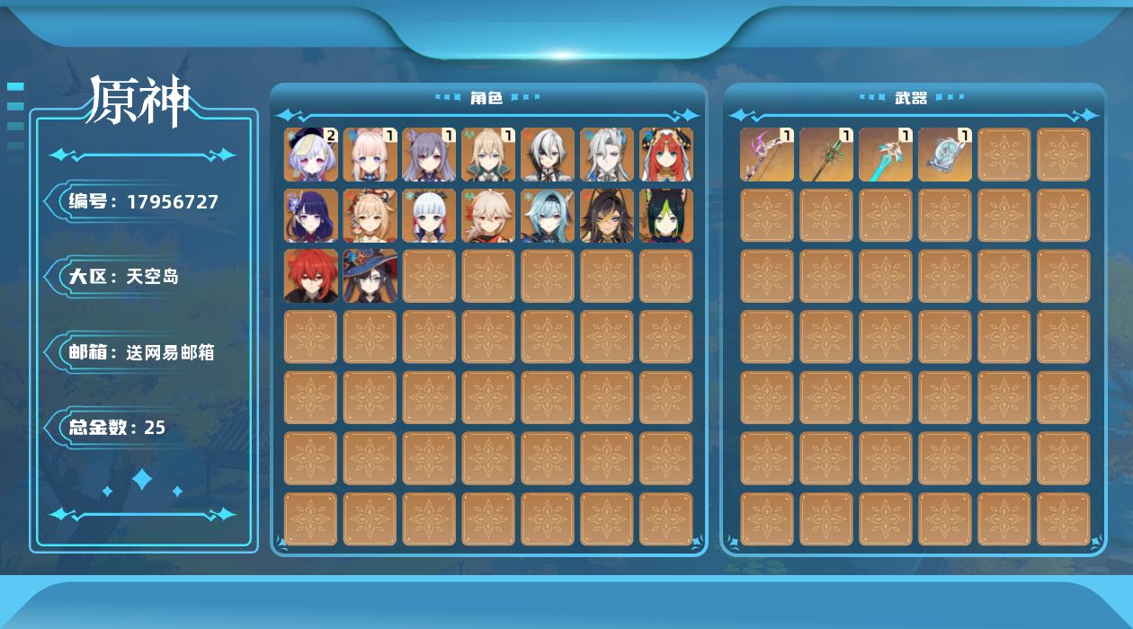 [17956727]58级/25黄/女主/16个五星角色/4个五星武器