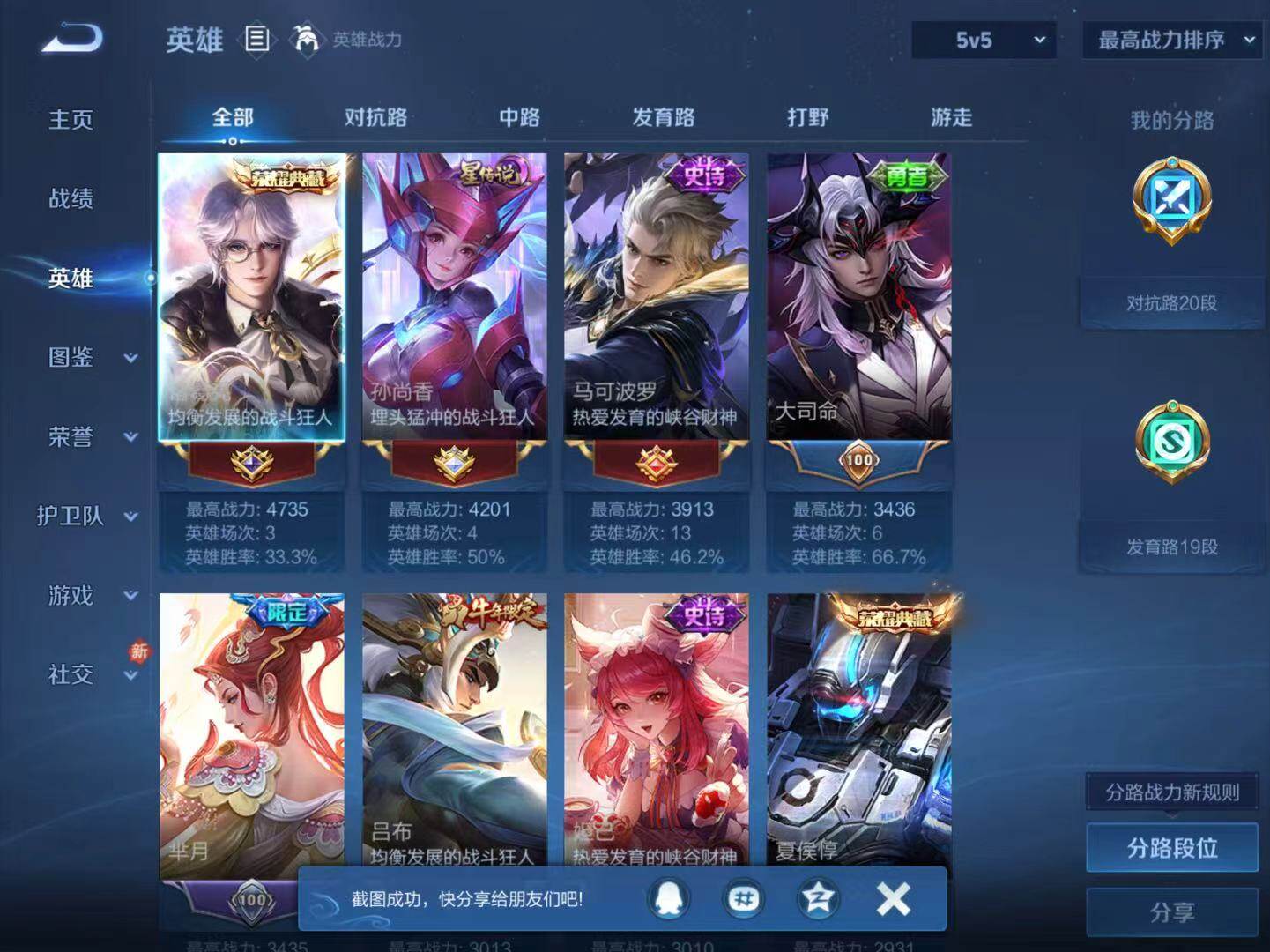 - [11712428]V5 3传说 124英雄 127皮肤 可修改实名 优质装备:山海·炽霜斩(李信年限) 珍宝阁皮:蔷薇恋人 限定皮:鸣野蒿,高山流水,怒海麟威,五谷丰年,梁祝,李小龙 史诗皮:星界战将,龙之律动,破空之剑,特工魅影,江河有灵,蒙恬荣光圣徽,偶像歌手,暗夜猫娘,末日机甲-吕布,猫狗日记-孙策,猫狗日记-大乔,女仆咖啡,水果甜心,绅士熊喵,天才门将,星夜王子,心灵骇客,暗隐猎兽者,幽灵船长,鬼剑武藏,暗渊魔法,地狱岩魂,乘风破浪,水晶猎龙者,金属风暴,圣诞恋歌,鹰眼统帅,魅力维加斯,无心