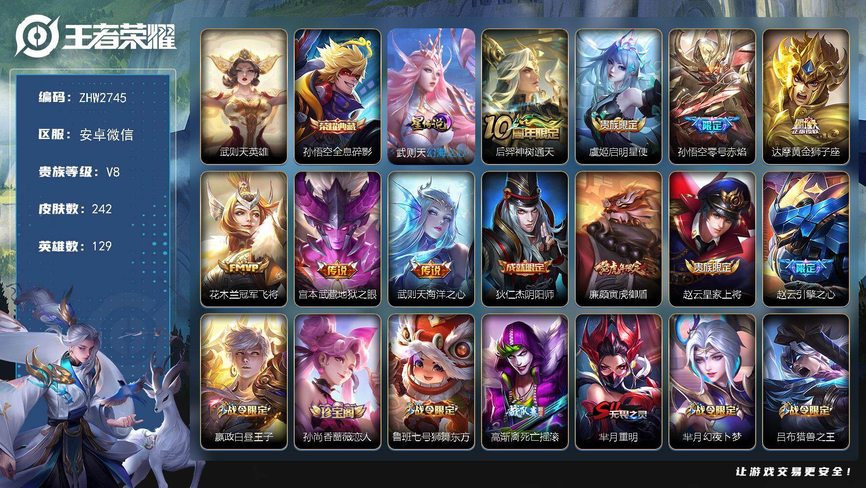 [17964521]安卓WX-V8-最强王者段位-129英雄-242皮肤-1典藏皮肤-1典藏英雄-7传说-71史诗