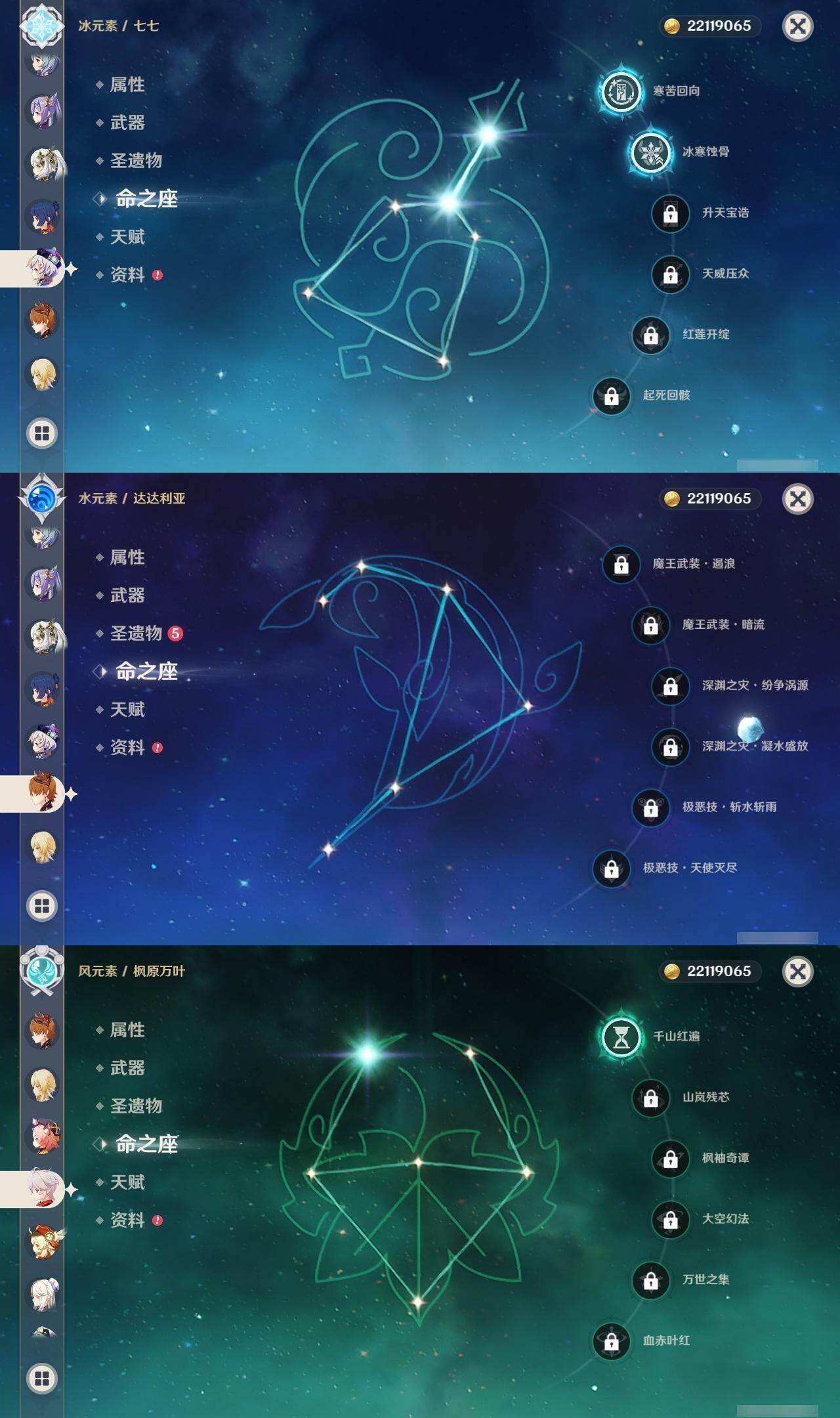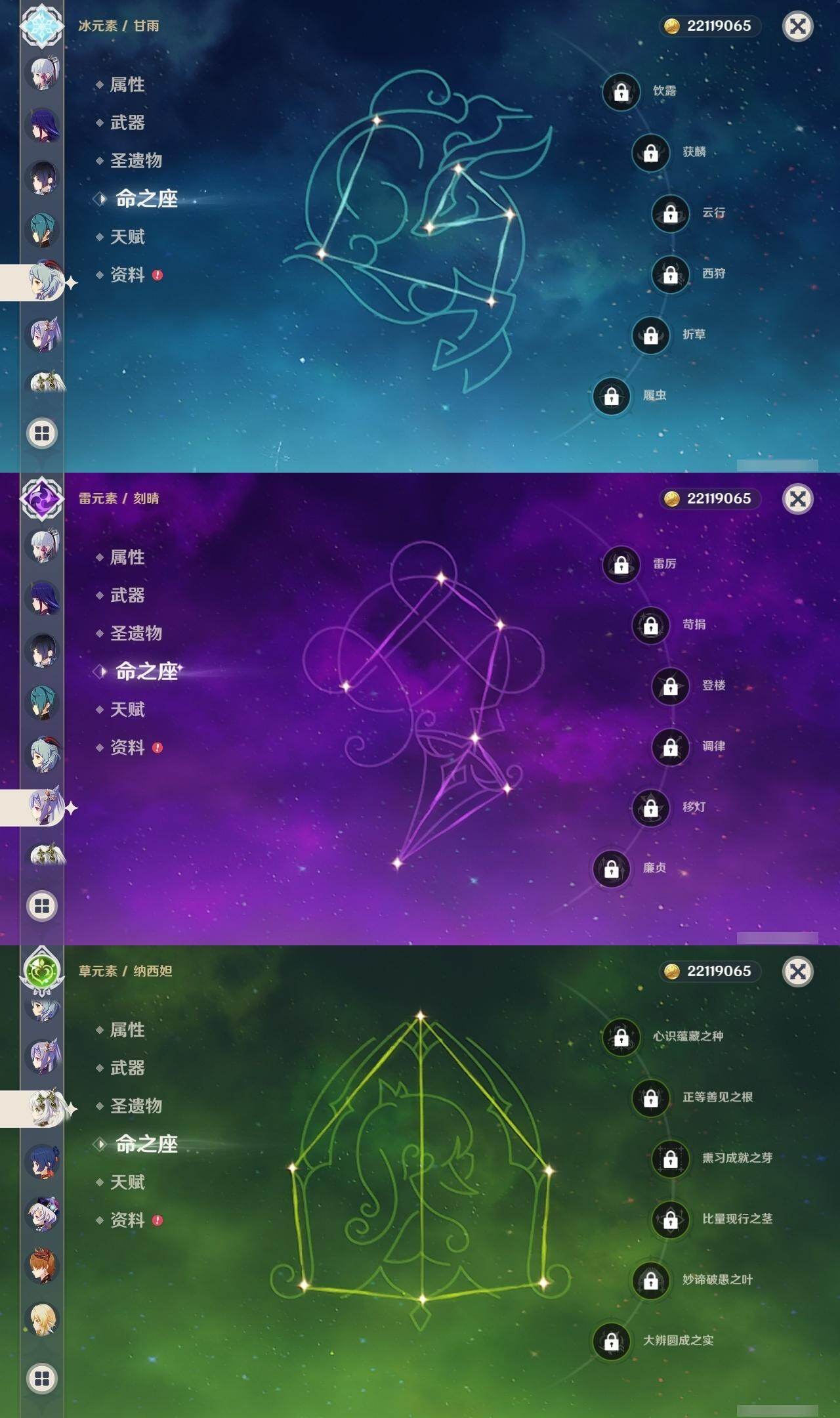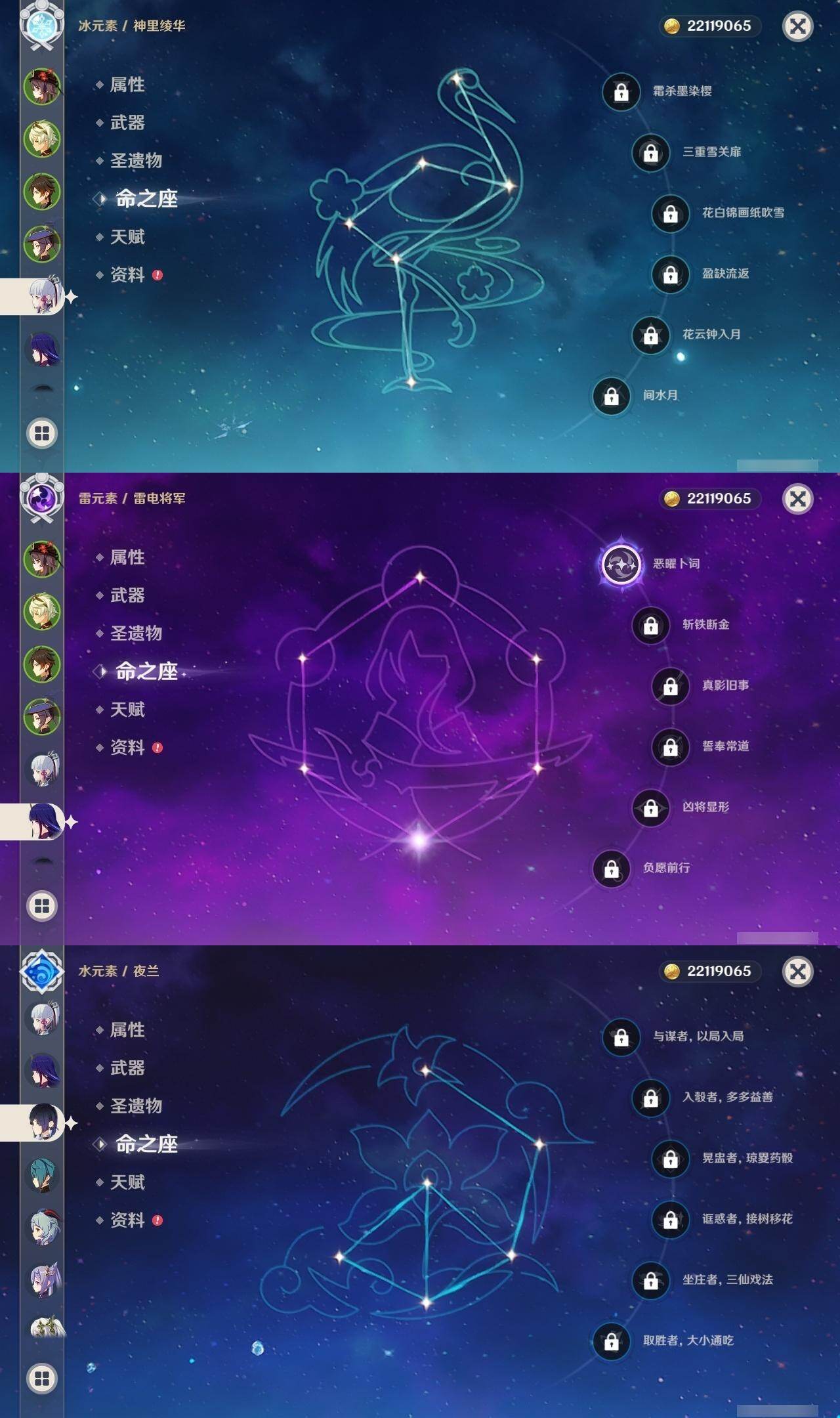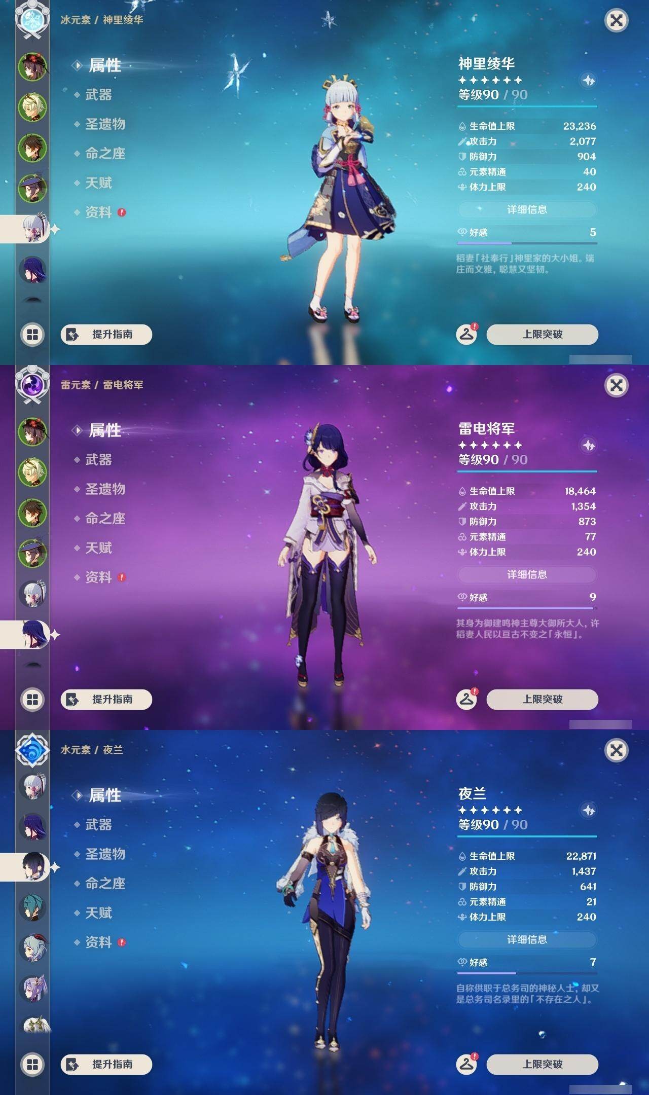 0命迪希雅,0命纳西妲,0命提纳里,0命夜兰,1命雷电将军,1命枫原万叶,0命神里绫华,0命钟离,1命胡桃,0命甘雨,0命可莉,0命达达利亚,0命刻晴,2命七七,0命琴,0命莫娜,1命迪卢克,0命梦见月瑞希,精1磐岩结绿,精1天空之脊,精1天空之翼,精1天空之刃