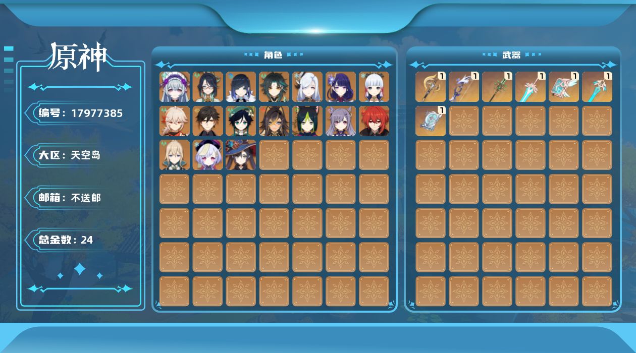 [17977385]57级/24黄/男主/17个五星角色/7个五星武器