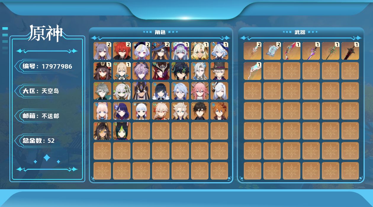 [17977986]60级/52黄/女主/30个五星角色/7个五星武器