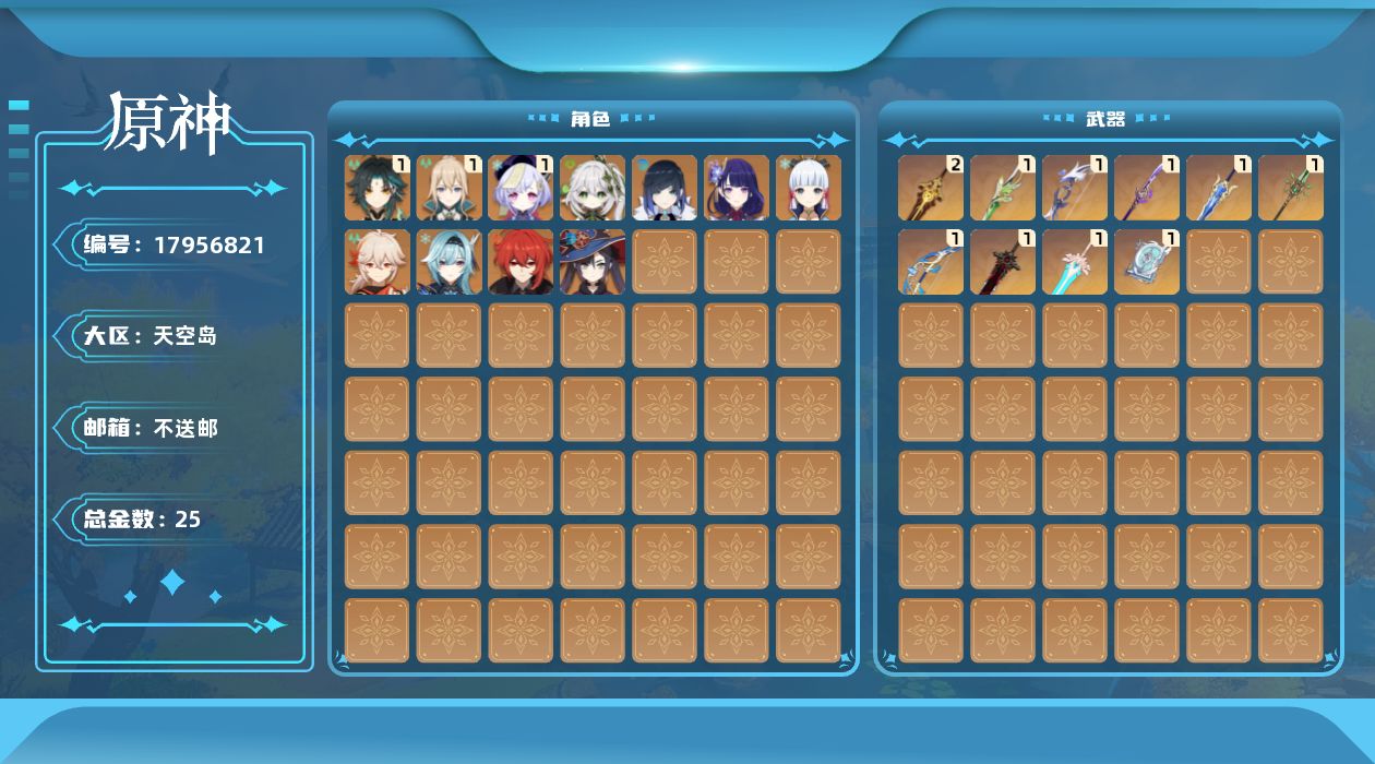 [17956821]58级/25黄/男主/11个五星角色/10个五星武器