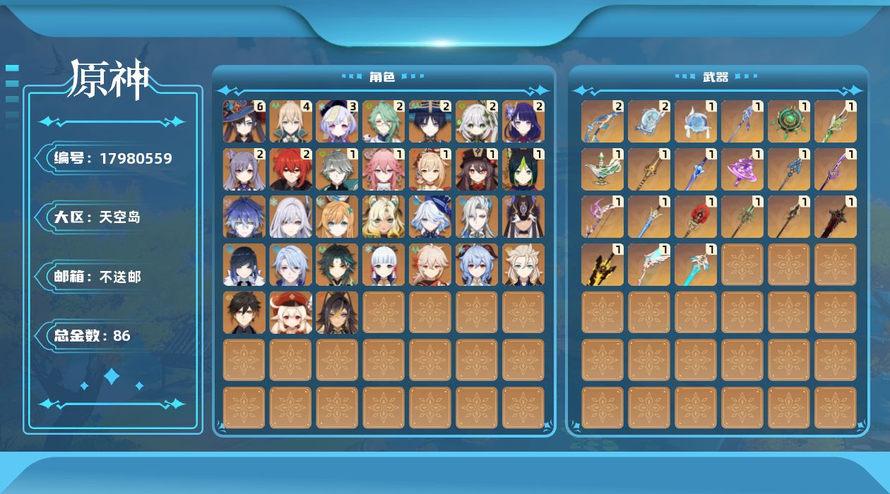[17980559]60级/86黄/女主/31个五星角色/23个五星武器