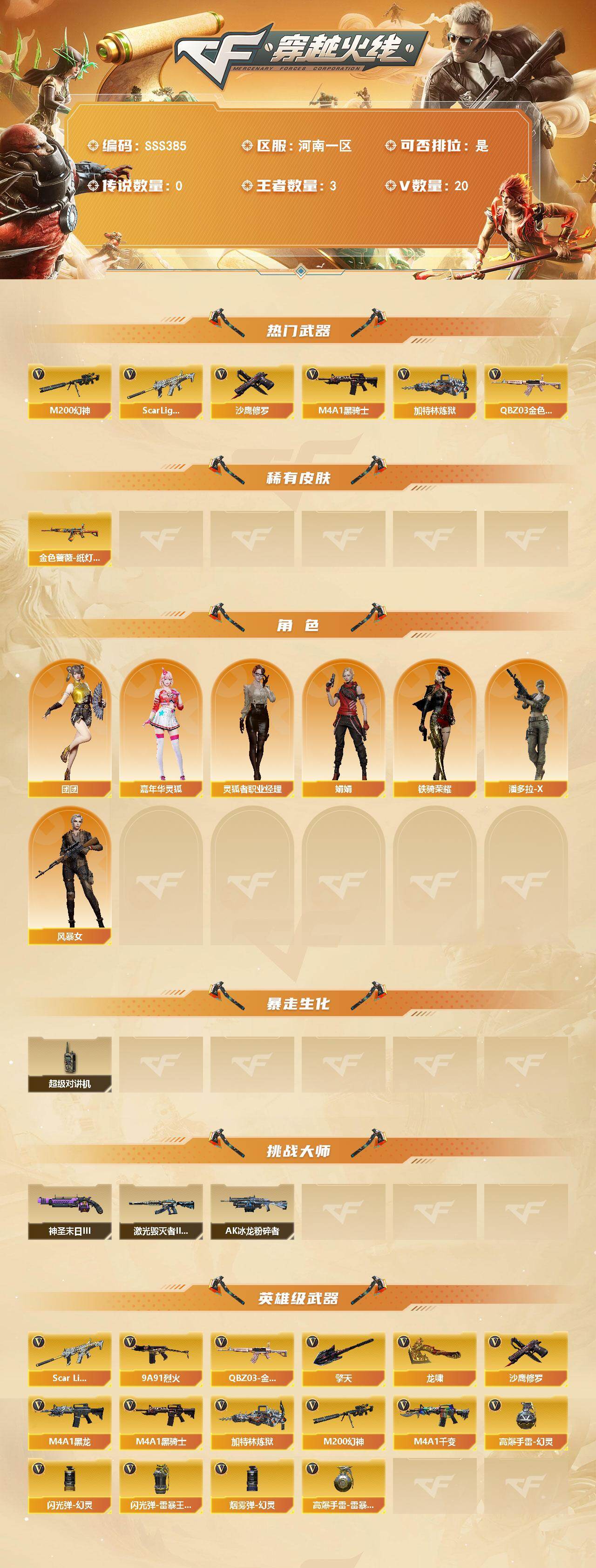 [18000177]河南一区-20V-3王者武器数-0炫金武器数