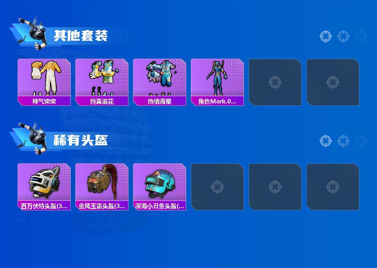 角色-守护天翼,角色-樱桃泡泡,套装-鹰眼刺客,套装-迅捷狂鲨