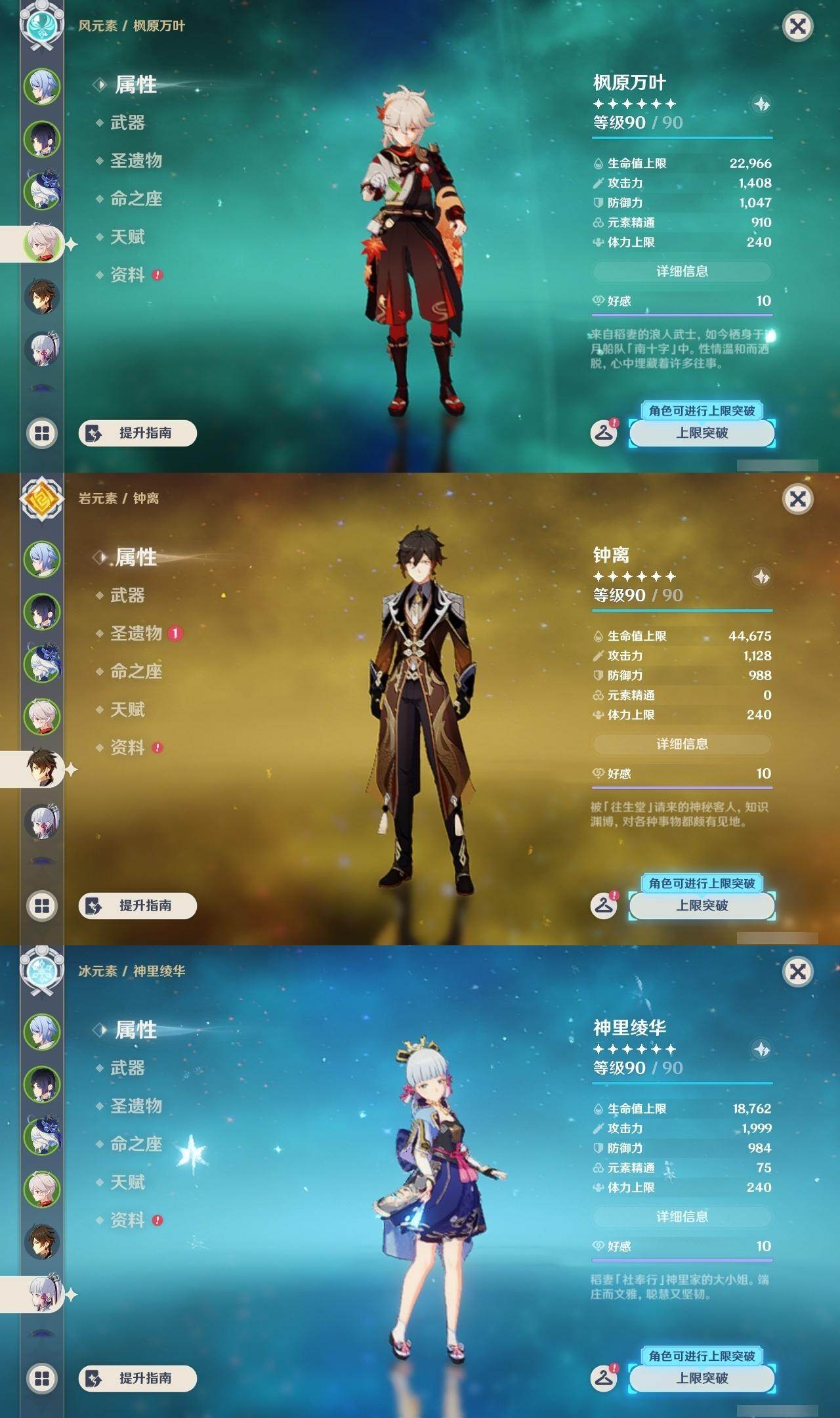 枫原万叶,钟离,神里凌华,雷电将军,达达利亚,申鹤,珊瑚宫心海,迪卢克,七七,琴,刻晴,莫娜