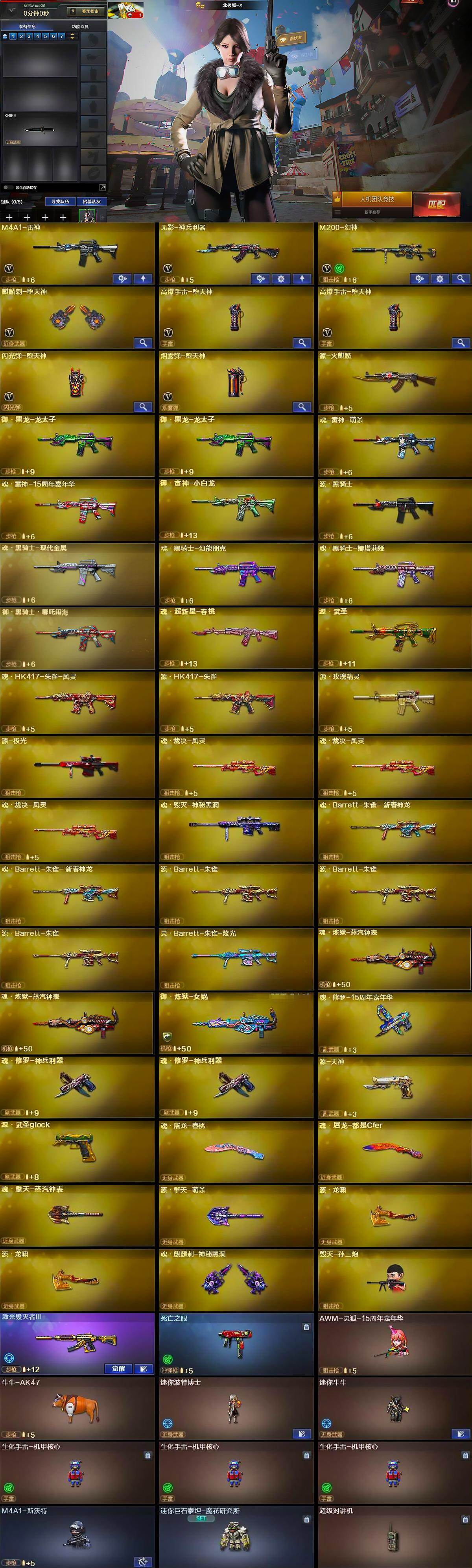 【源级武器】:源·火麒麟,御·黑龙-龙太子*2,魂-雷神-萌杀,魂·雷神-15周年嘉年华,御·雷神-机甲刑天,御·雷神-小白龙,源·黑骑士,魂·黑骑士-现代金属,魂·黑骑士-幻能朋克,魂·黑骑士-娜塔莉娅,御·黑骑士·哪吒闹海,源·天启,魂·超新星-春桃,源·武圣,魂·HK417-朱雀-凤灵,源·HK417-朱雀,源·玫瑰精灵,源-极光,魂·裁决-凤灵*3,源·毁灭,魂·毁灭-青帝,魂·毁灭-神秘黑洞,御·毁灭-黑大圣,魂·Barrett-朱雀- 新春神龙*2,源·Barrett-朱雀*3,灵·Barrett-朱雀-炫光,魂·炼狱-蒸汽钟表*2,御·炼狱-女娲,魂·修罗-15周年嘉年华,魂·修罗-神兵利器*2,源·天神,源·武圣glock,魂·屠龙-春桃,魂·屠龙-都是Cfer,魂·擎天-蒸汽钟表,源·擎天-萌杀,源·龙啸*2,魂·麒麟刺-神秘黑洞