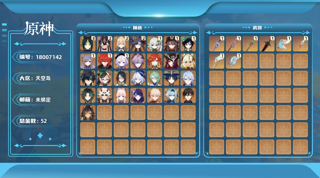 [18007142]60级/52黄/男主/29个五星角色/8个五星武器