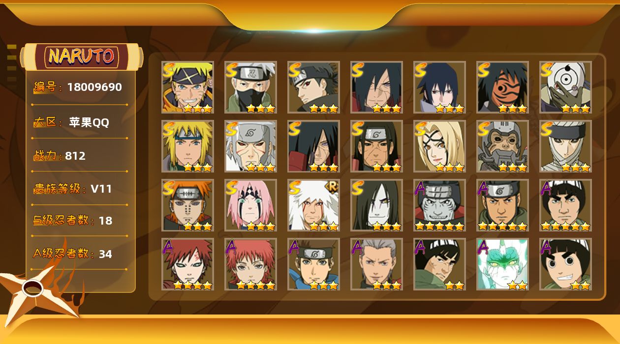 - 火影忍者手游/QQ/苹果QQ1-100区/1区李洛克