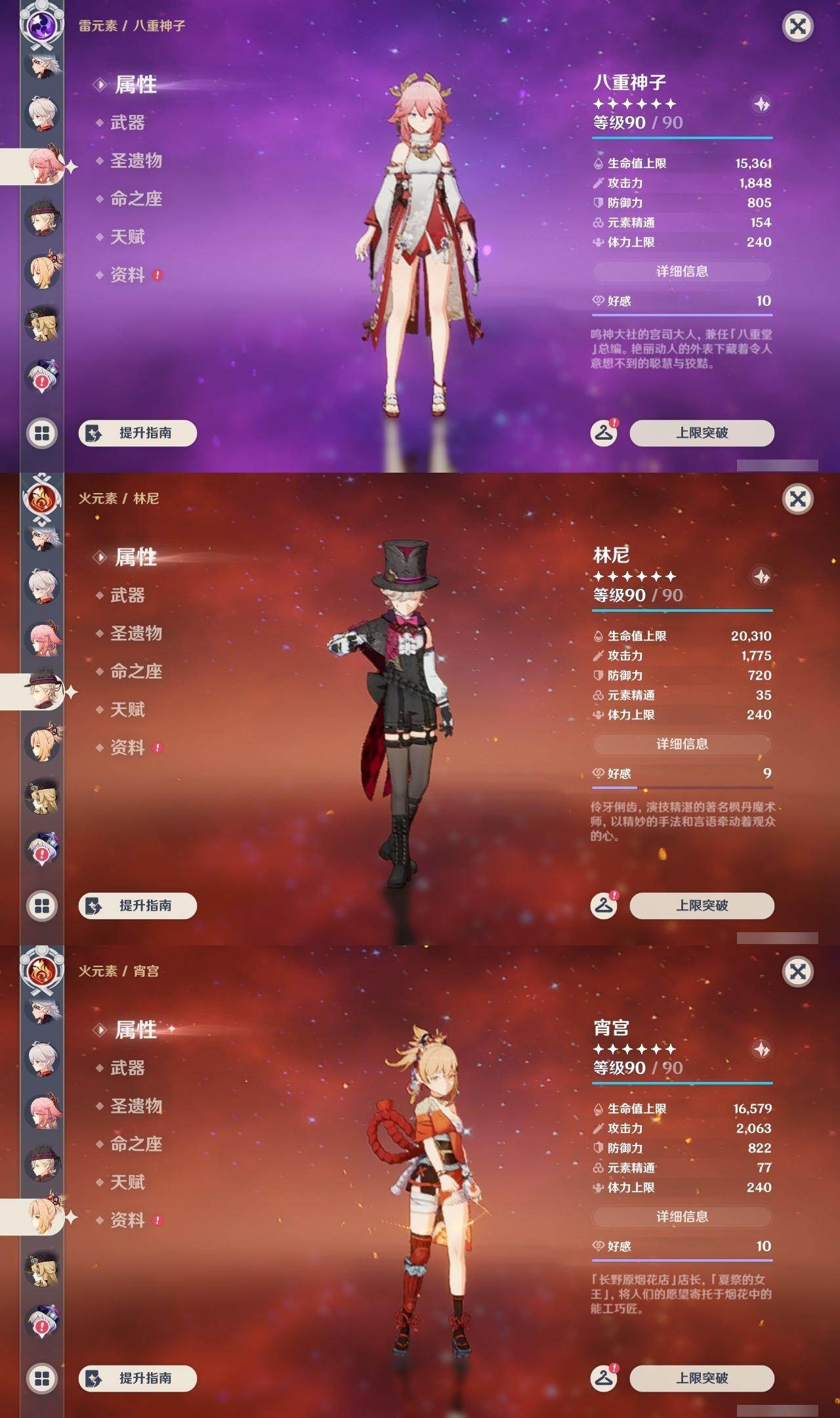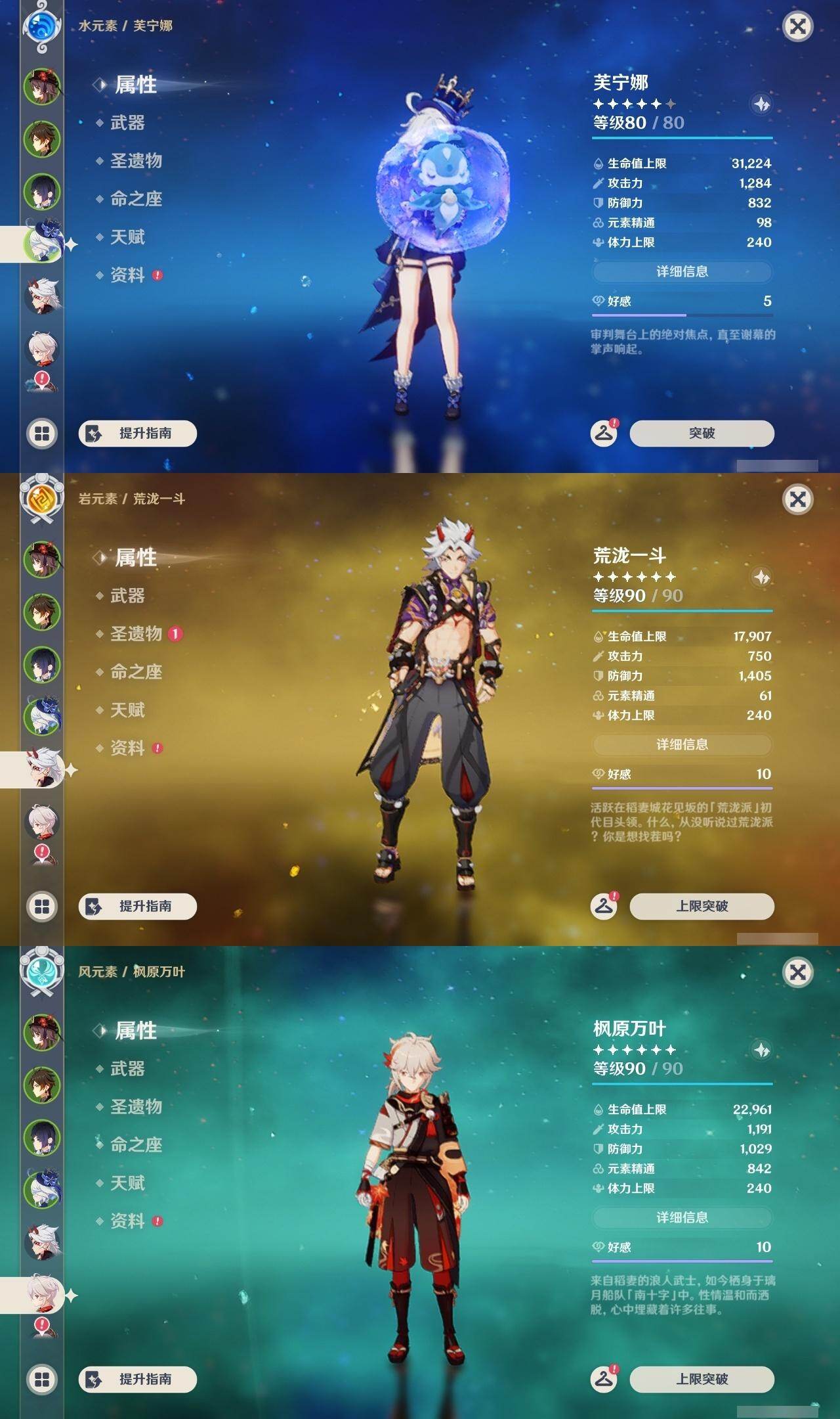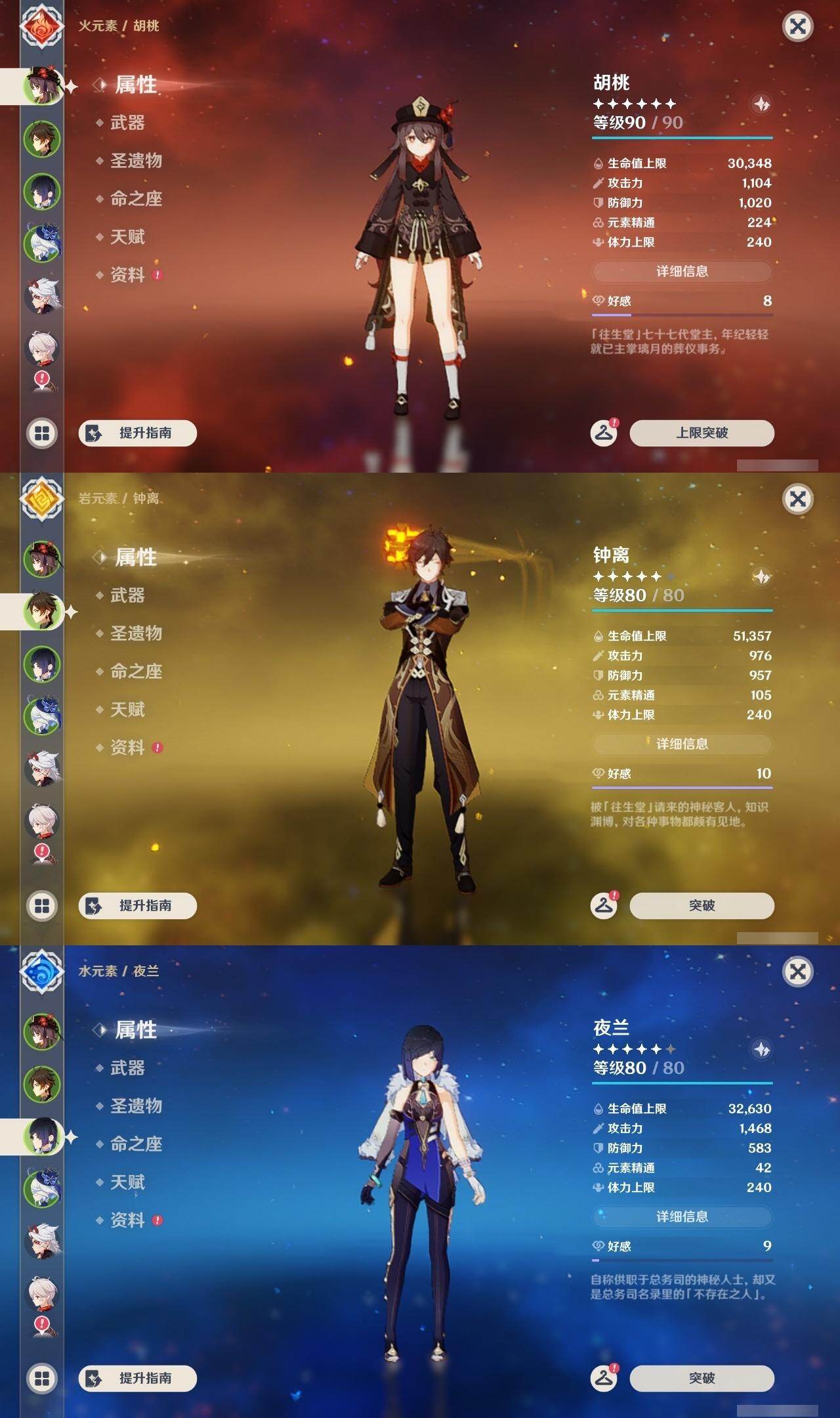 胡桃,钟离,荒泷一斗,枫原万叶,八重神子,宵宫,七七,迪卢克,琴