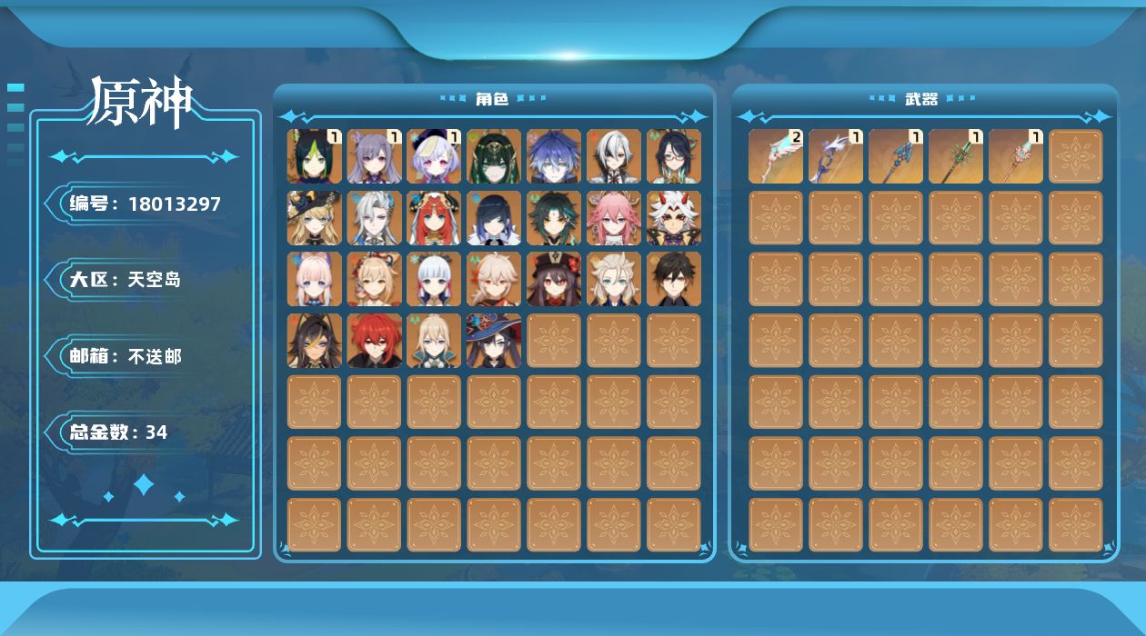 [18013297]58级/34黄/女主/25个五星角色/5个五星武器