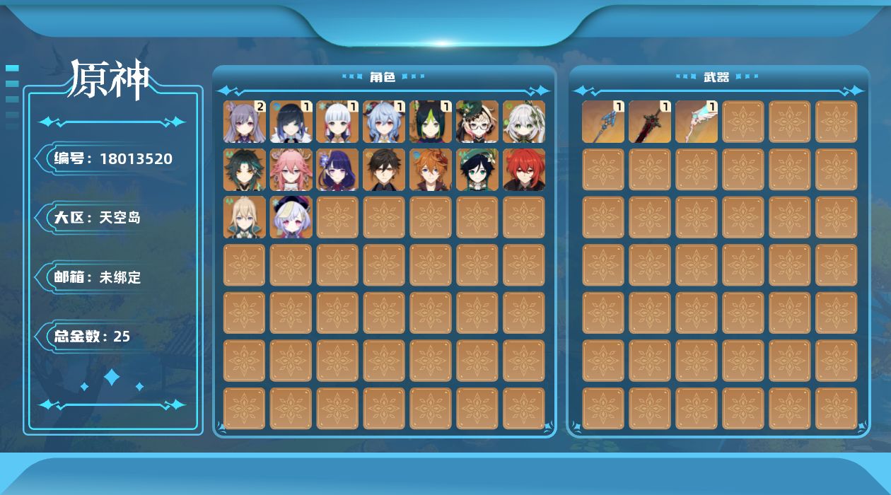 [18013520]57级/25黄/女主/16个五星角色/3个五星武器