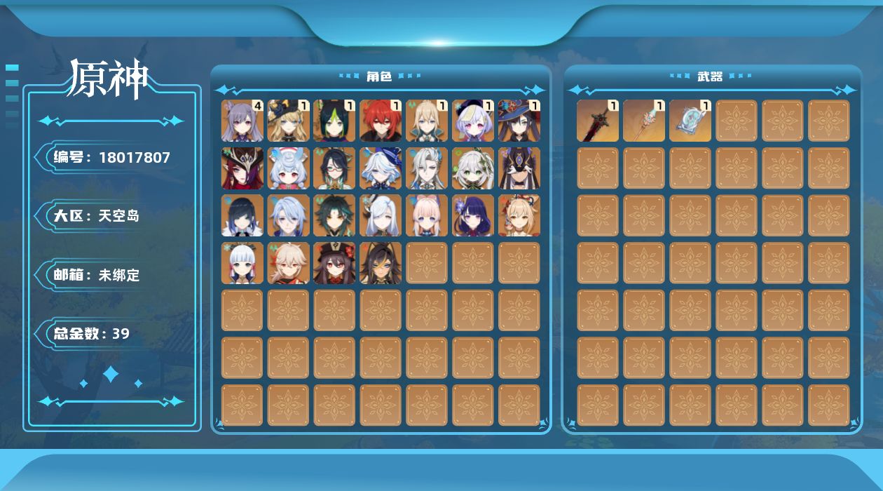 [18017807]59级/39黄/女主/25个五星角色/4个五星武器
