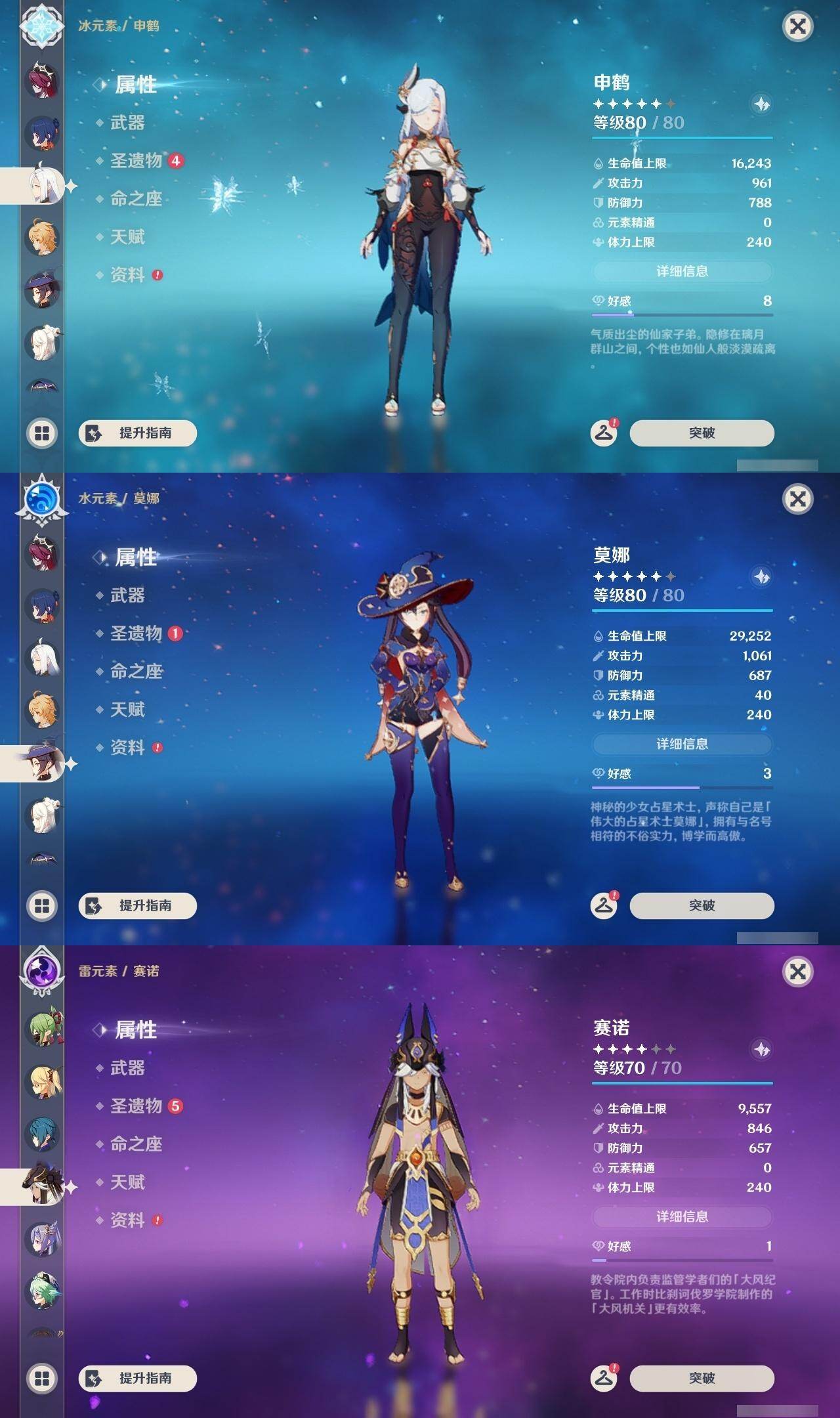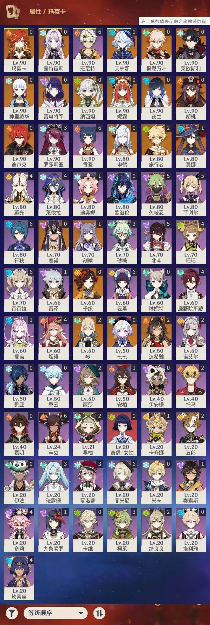 - [16493325]59级/29黄/女主/19个五星角色/7个五星武器 0命阿蕾奇诺,0命芙宁娜,0命那维莱特,0命流浪者,0命纳西妲,0命提纳里,0命夜兰,0命神里绫人,0命申鹤,1命枫原万叶,0命钟离,0命胡桃,0命甘雨,0命宵宫,0命达达利亚,0命七七,0命琴,0命莫娜,2命迪卢克,精1裁断,精1冬极白星,精1苍古自由之誓,精1和璞鸢,精1阿莫斯之弓,精1天空之卷,精1风鹰剑