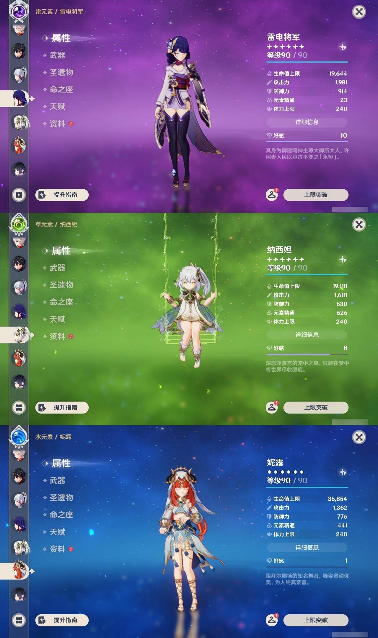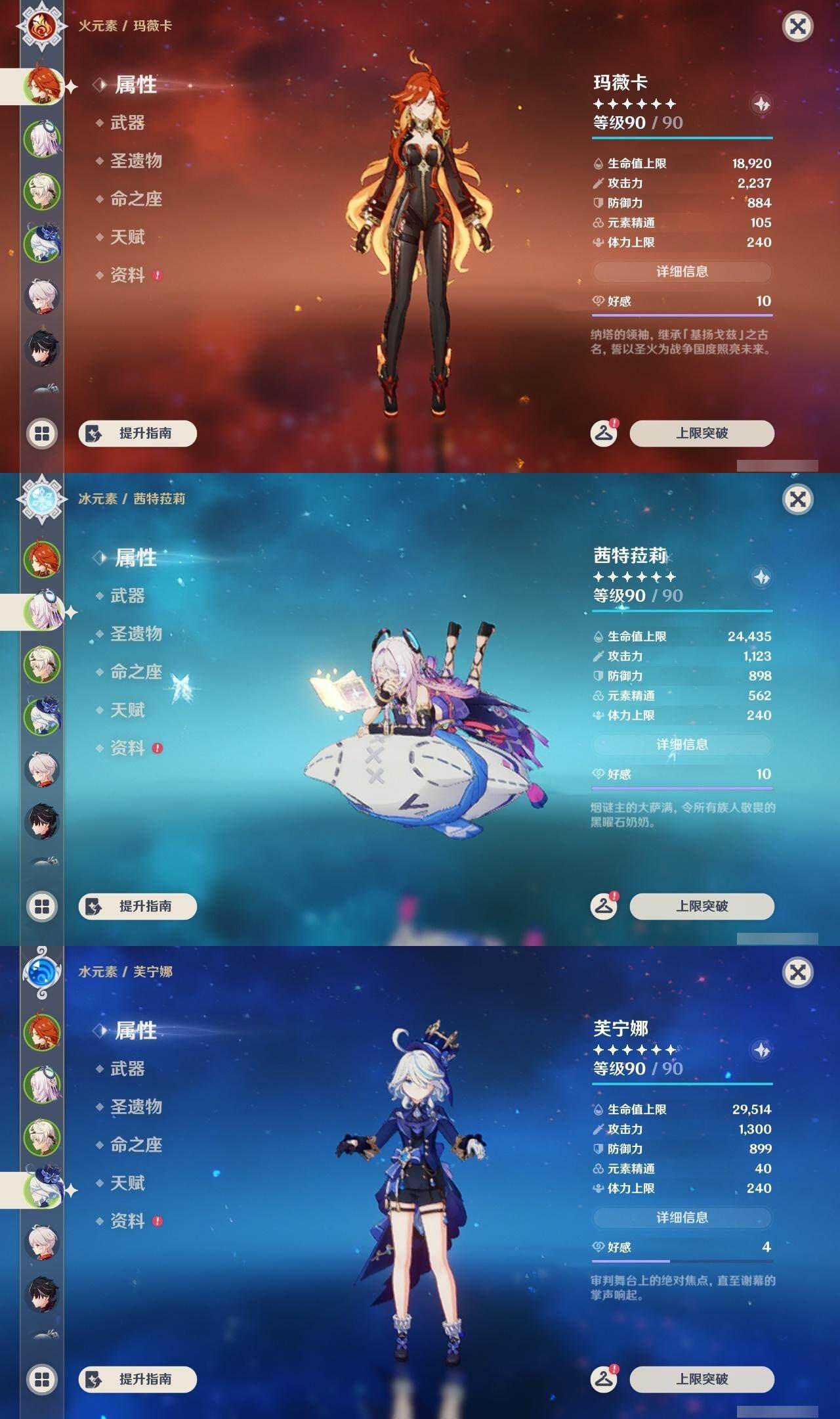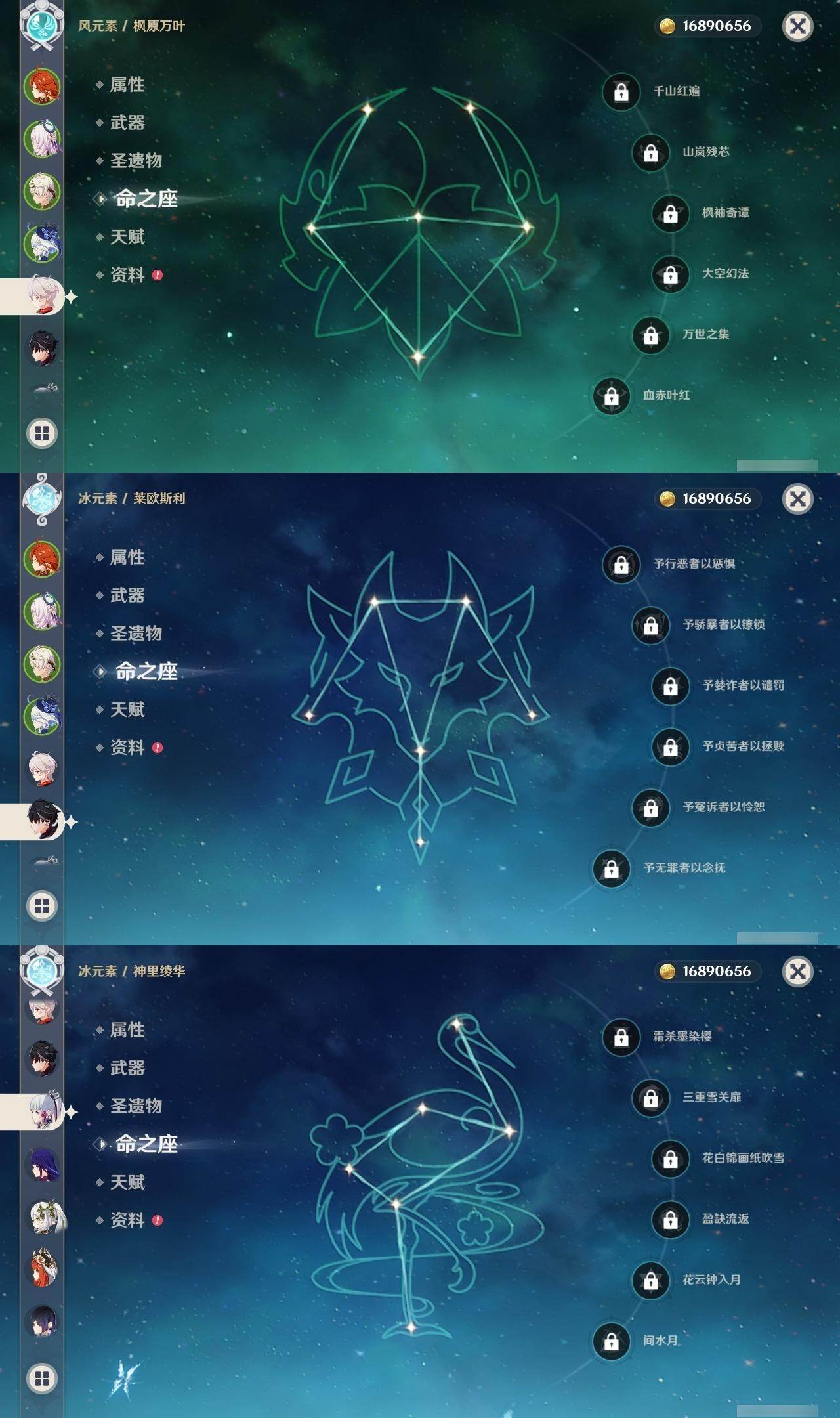 枫原万叶,神里凌华,雷电将军,胡桃,迪卢克,申鹤,莫娜,刻晴,琴,七七