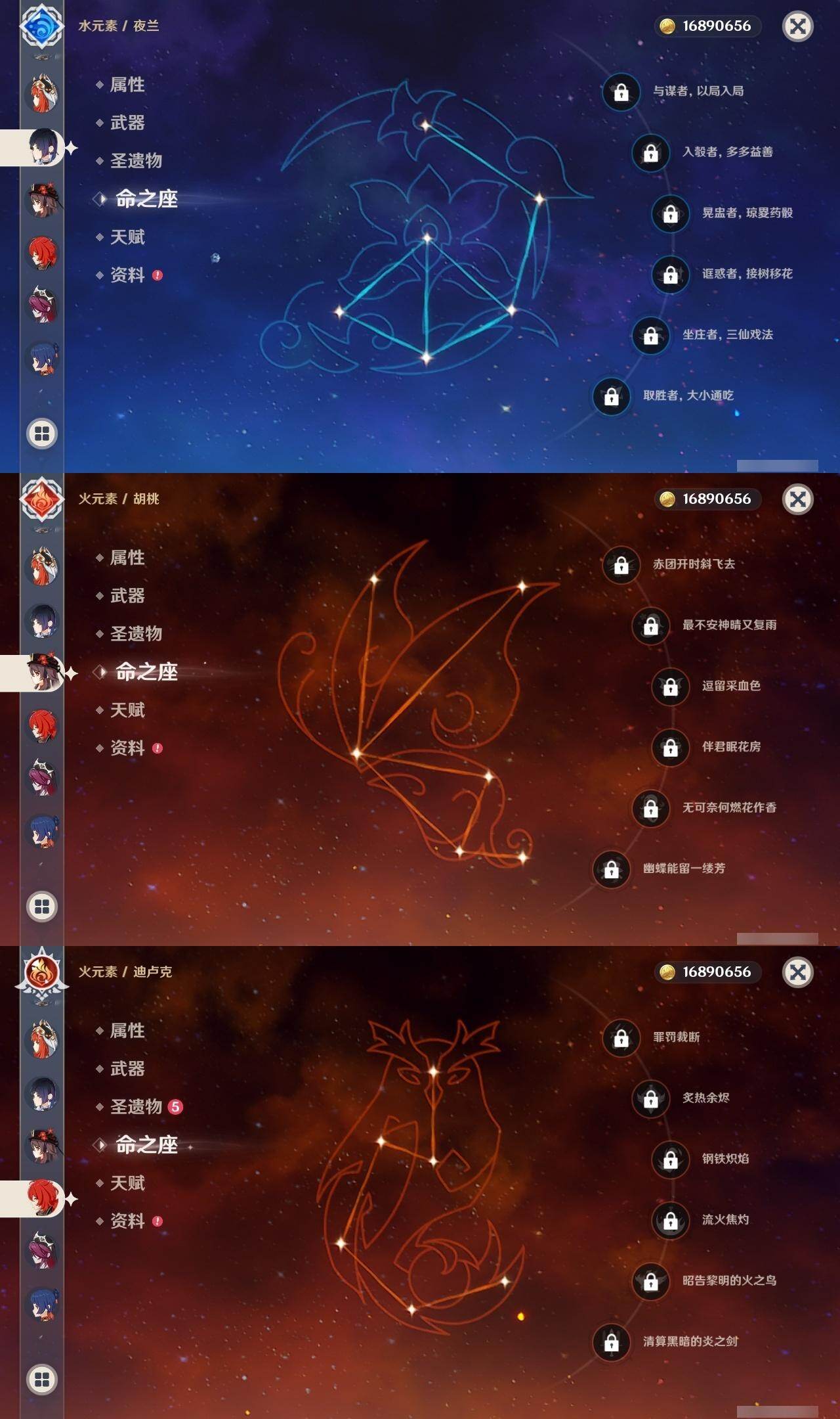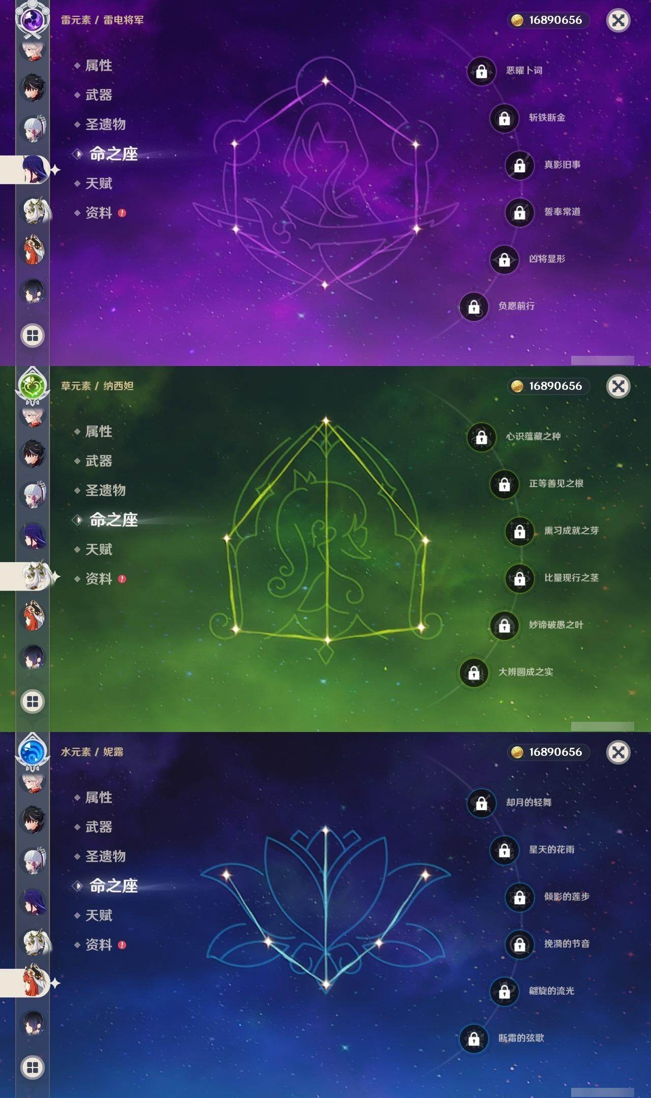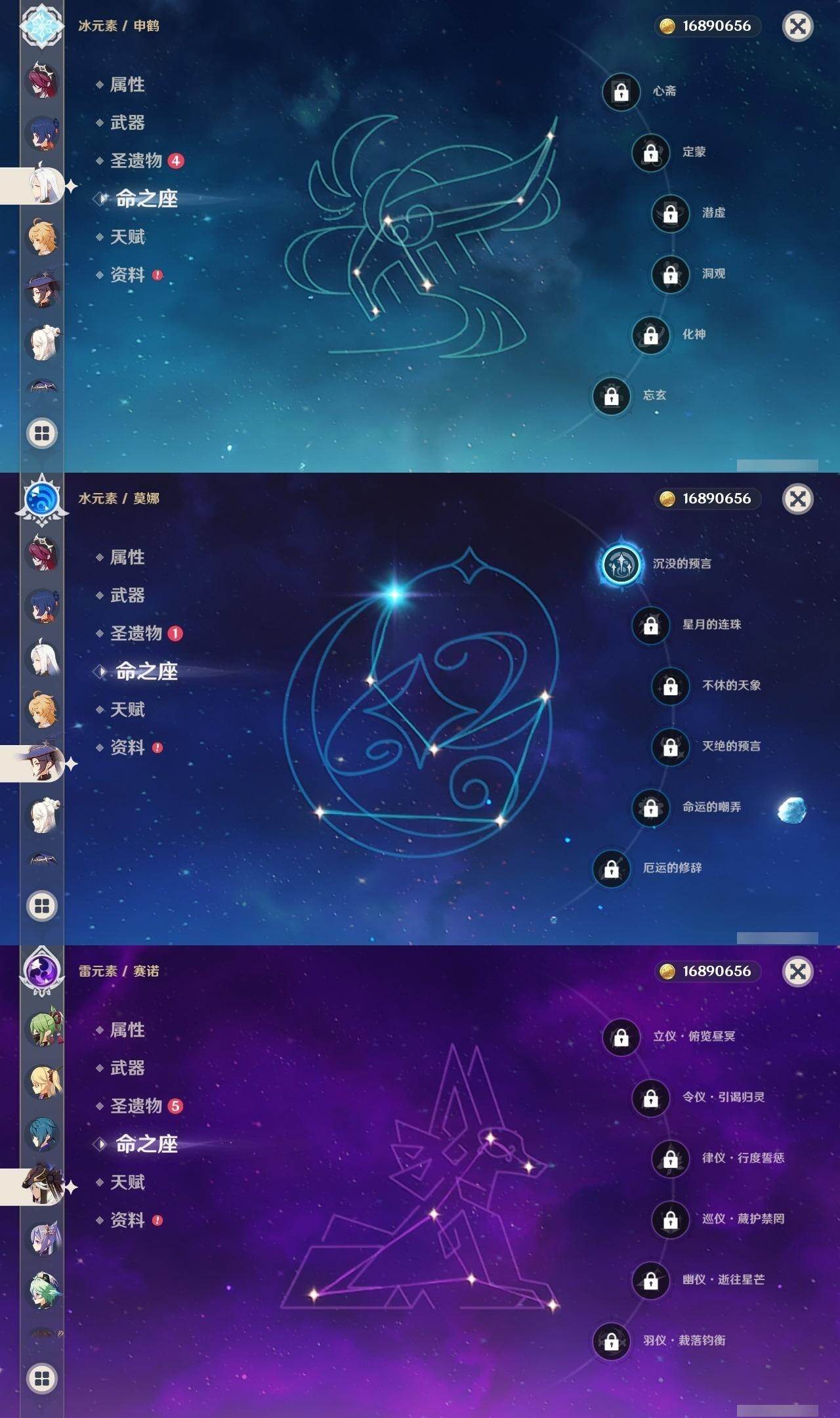 0命千织,0命芙宁娜,0命莱欧斯利,2命迪希雅,0命纳西妲,0命妮露,0命赛诺,0命夜兰,0命申鹤,0命雷电将军,0命枫原万叶,0命神里绫华,0命胡桃,1命刻晴,0命七七,2命琴,1命莫娜,0命迪卢克,0命玛薇卡,0命茜特菈莉,精1若水,精1四风原典,精1天空之脊