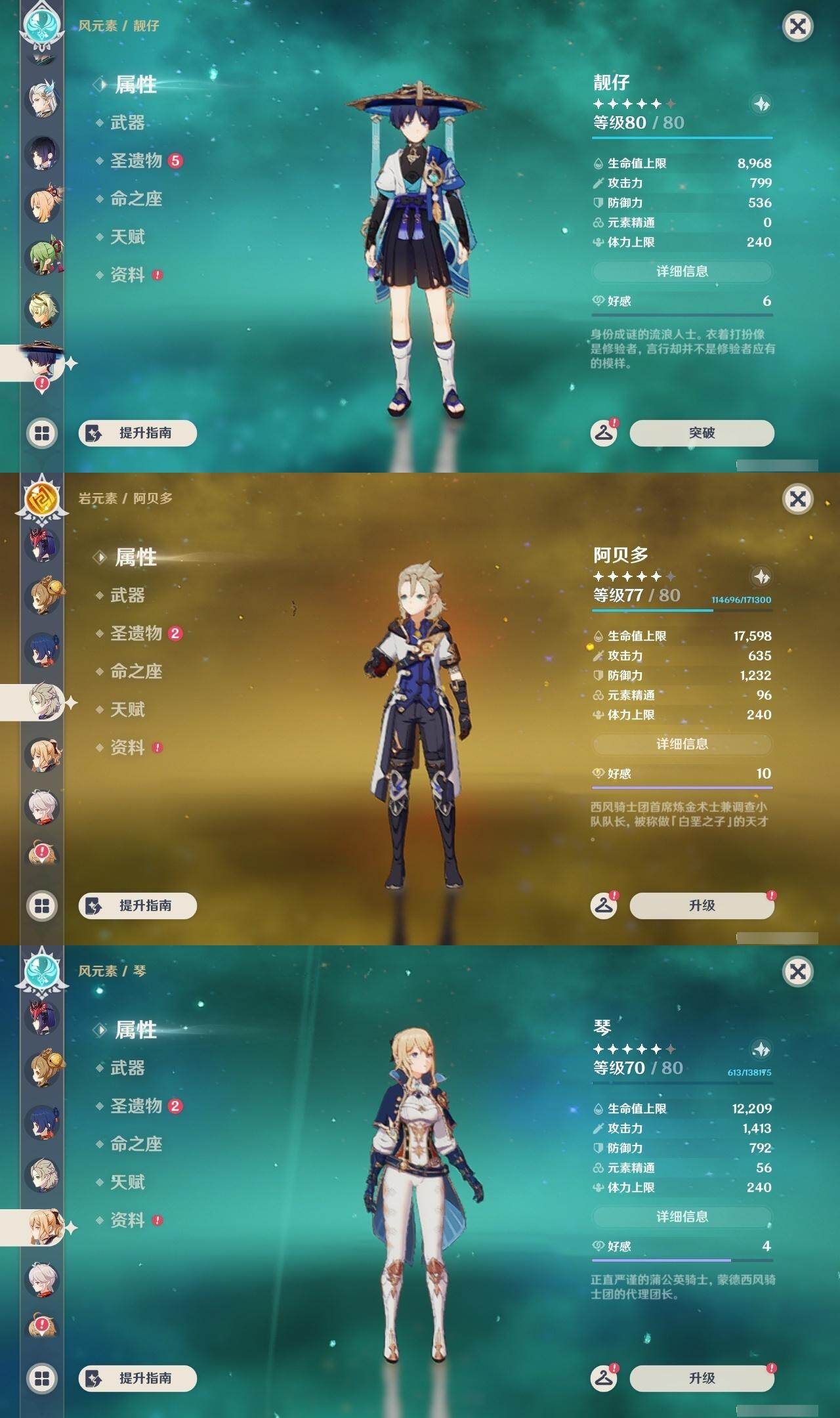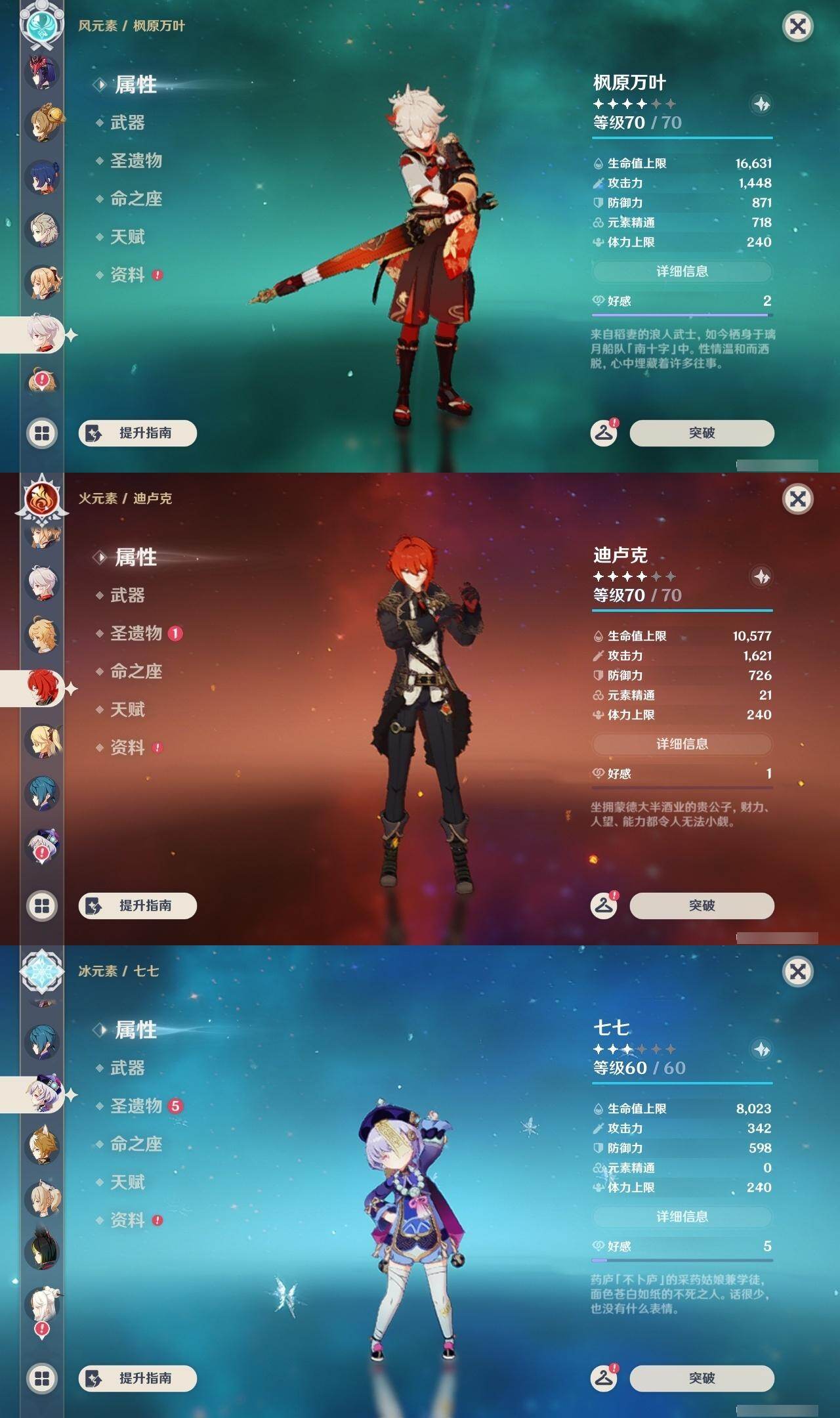 荒泷一斗,魈,雷电将军,宵宫,阿贝多,琴,枫原万叶,迪卢克,七七,莫娜,刻晴