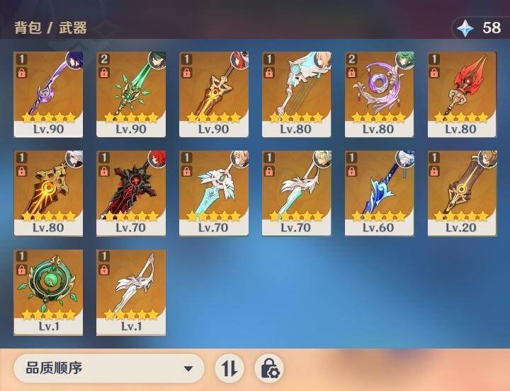 [18017986]58级/42黄/男主/22个五星角色/14个五星武器