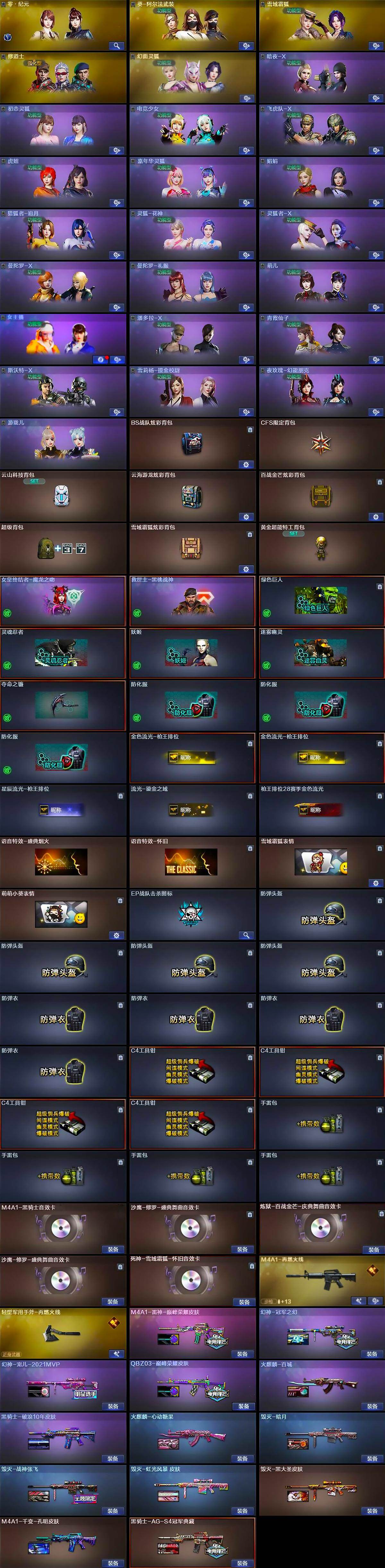 【皮肤】:幻神-冠军之幻,幻神-宠儿-2021MVP,QBZ03-巅峰荣耀皮肤,M4A1-雷神-巅峰荣耀皮肤,M4A1-再燃火线,火麒麟-百城,火麒麟-心动糖果,毁灭-暗月,毁灭-战神张飞,毁灭-黑大圣皮肤,毁灭-虹光风暴 皮肤,毁灭-英雄计划 皮肤,M4A1-千变-孔明皮肤,黑骑士-AG-S4冠军典藏,黑骑士-破浪10年皮肤,轻型军用手斧-再燃火线