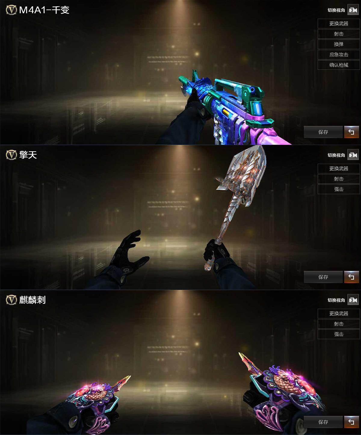 【皮肤】:M4A1-千变-孔明皮肤,擎天-秘银,麒麟刺-月皮肤