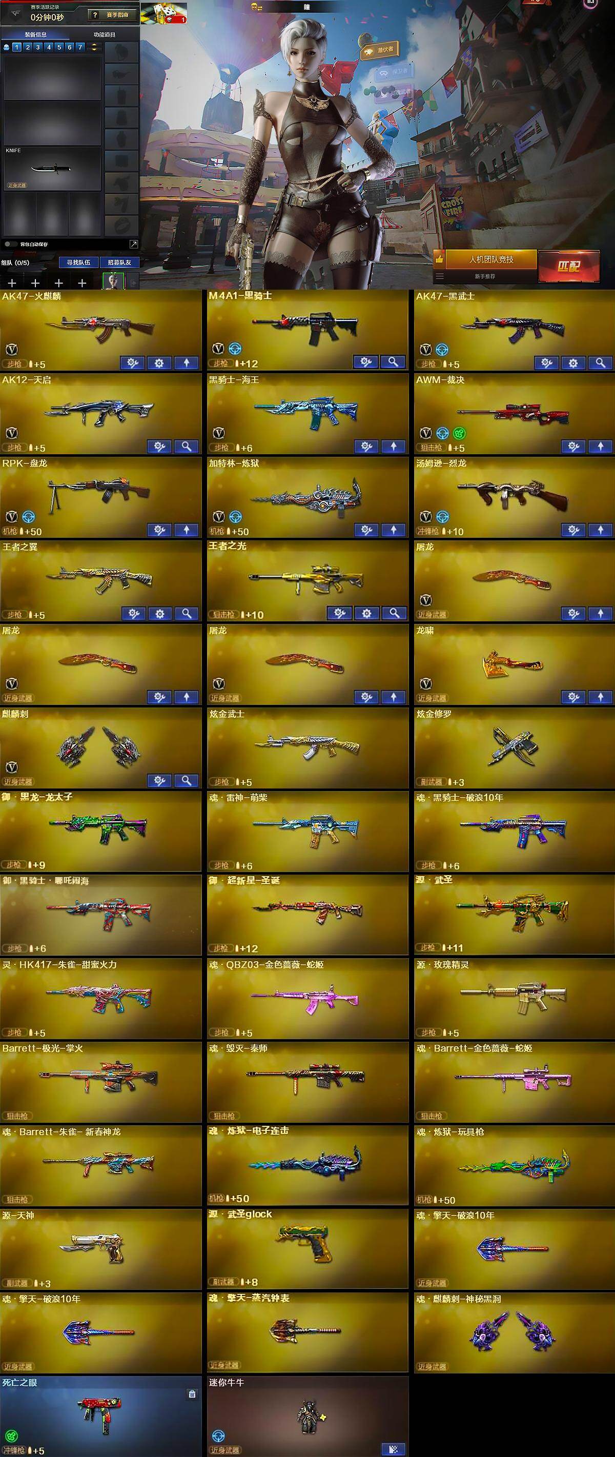 【英雄级武器】:AK47-火麒麟,M4A1-黑骑士,AK47-黑武士,AK12-天启,黑骑士-海王,AWM-裁决,RPK-盘龙,加特林-炼狱,汤姆逊-烈龙,屠龙*3,龙啸,麒麟刺