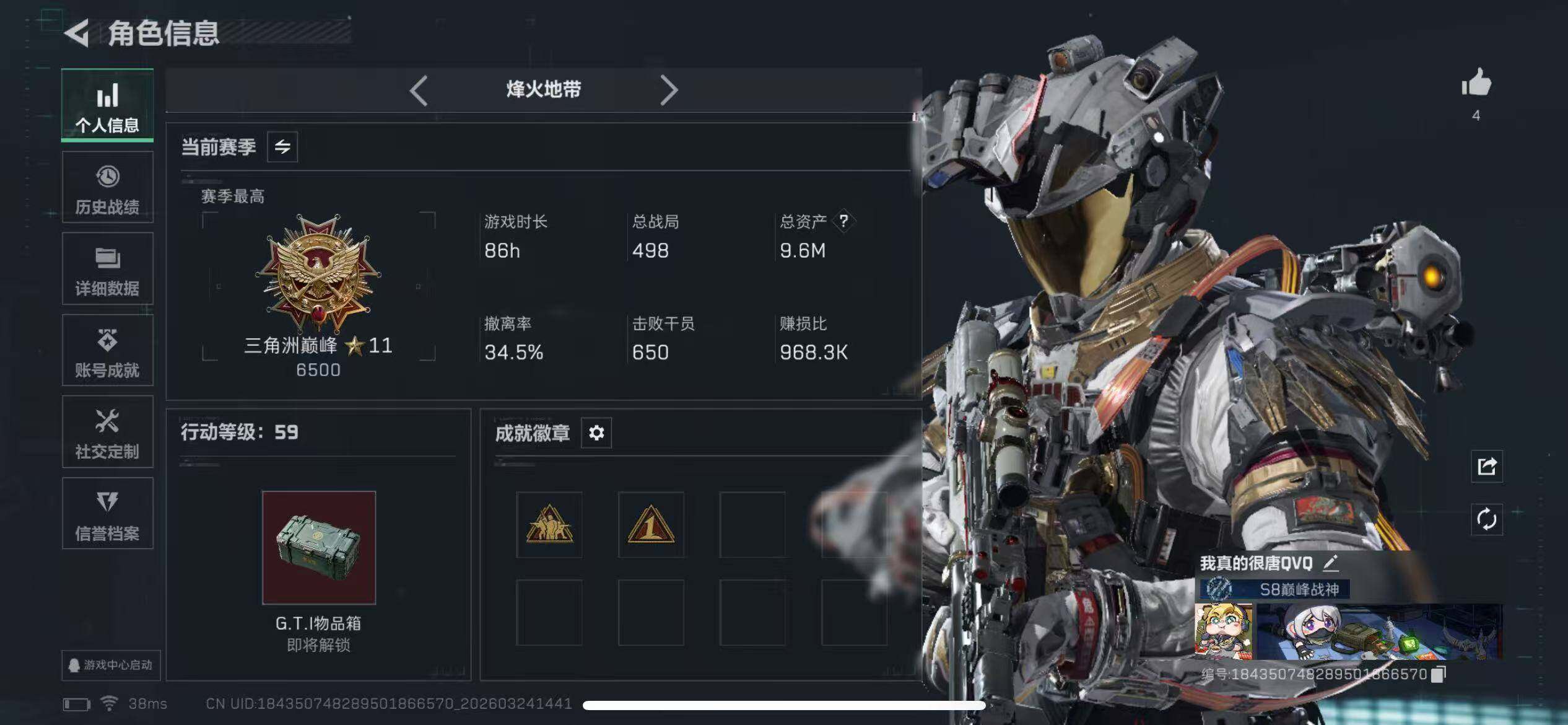 [18027690]【特价出售/店主推荐】9m总资产-361k哈夫币-59烽火等级-三角洲巅峰-17战场等级-军士长