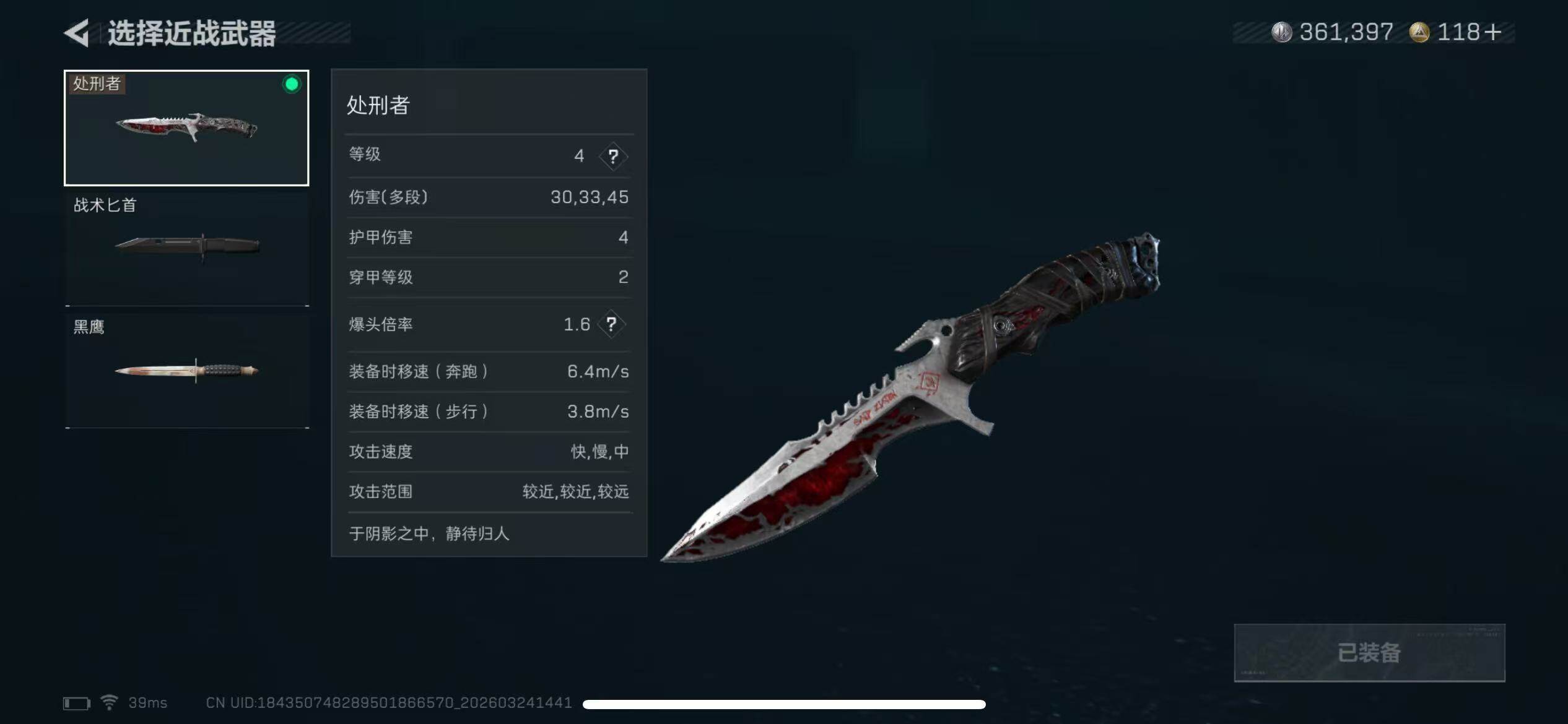 【近战皮肤】:近战-处刑者4级,近战-黑鹰