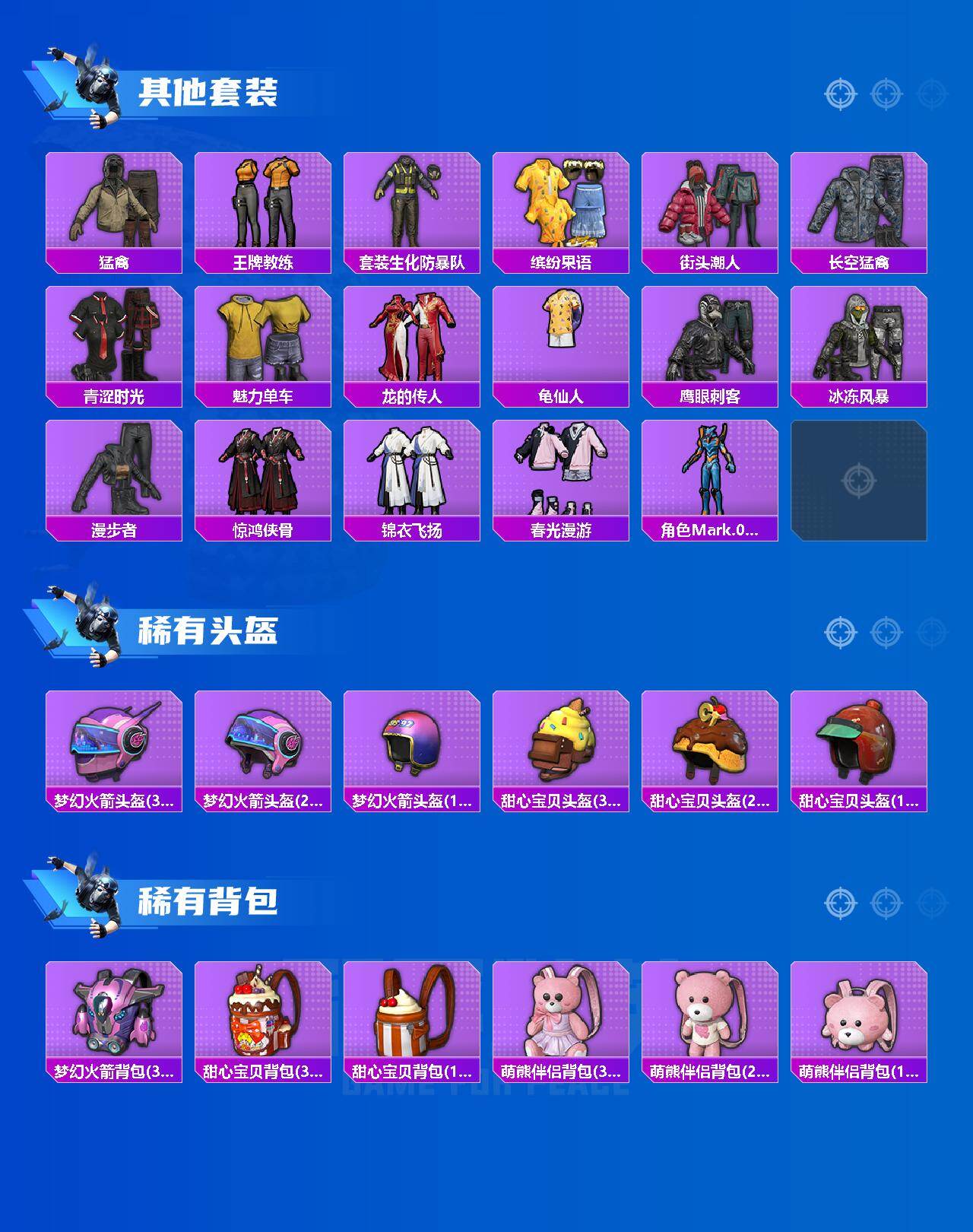 套装-梦幻火箭,套装-火箭少女101,套装-宝贝奶油派,套装-绚金战神,套装-鹰眼刺客