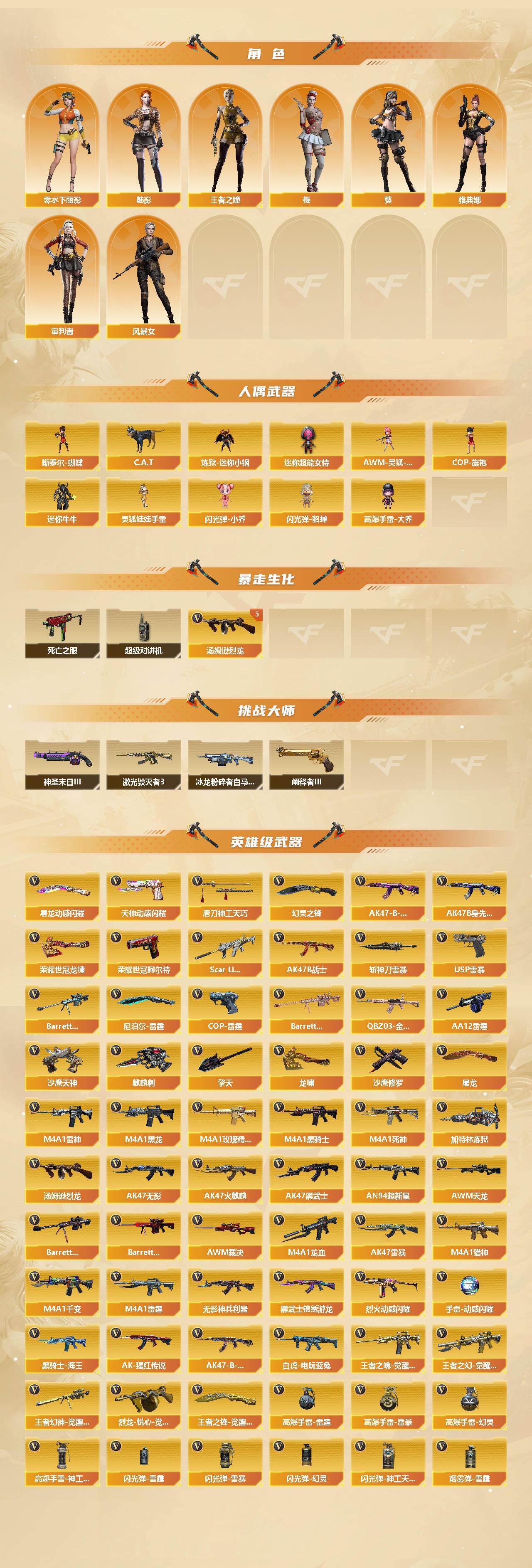 【英雄级武器】:M4A1-千变,AK47-火麒麟*4,M4A1-黑龙,M4A1-雷神*3,M4A1-黑