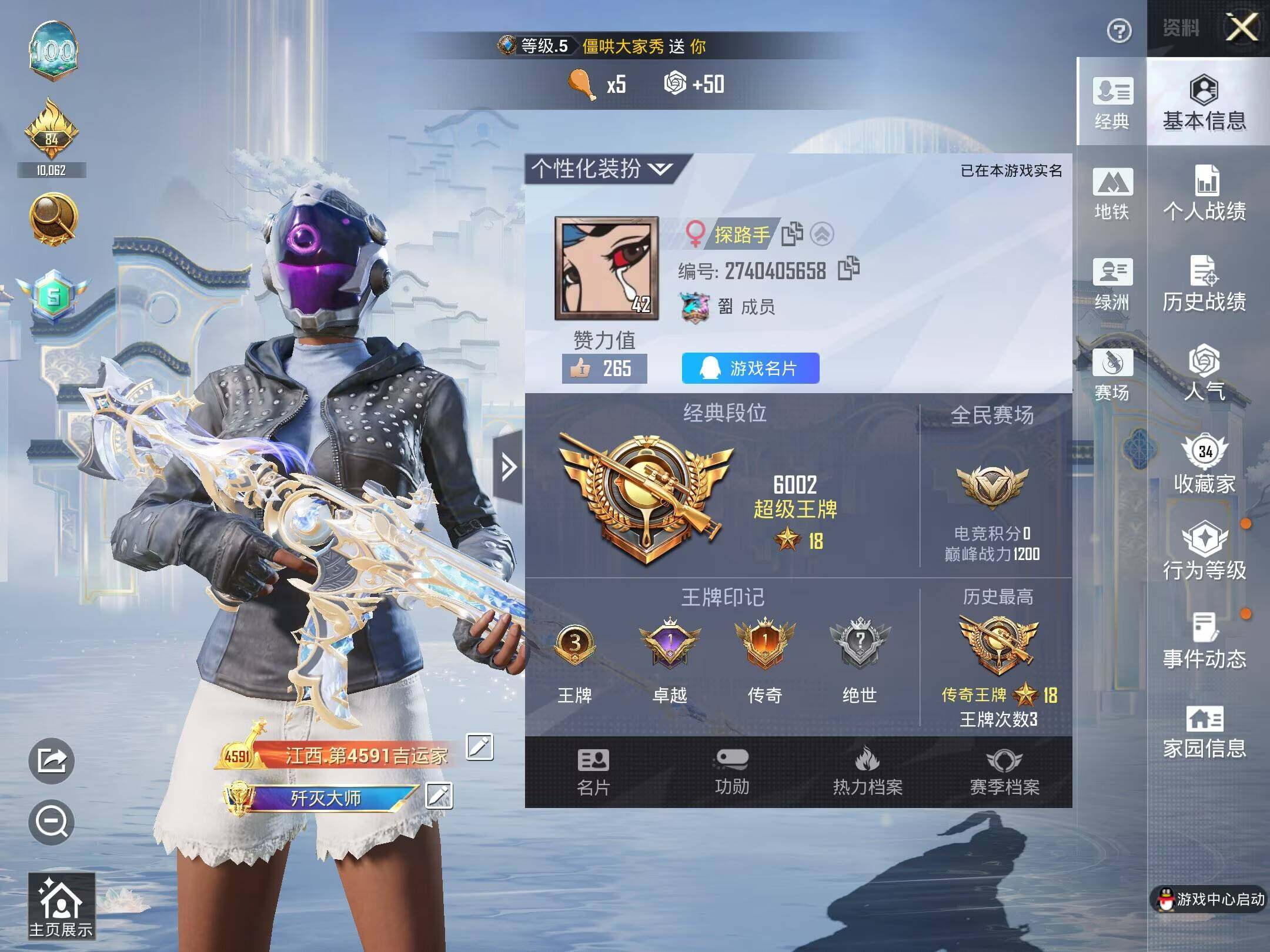 - [17195415]639m总资产-543248k哈伏币-60烽火等级-黄金-18战场等级-列兵 【干员外观】:骇爪-维什戴尔,蜂医-送葬人·无题密令,红狼-电锯惊魂 【近战皮肤】:近战-黑鹰 【传说外观】:M4A1突击步枪-阿米娅,ASh-12战斗步枪-鹅鸭杀,AK-12突击步枪-特斯拉线圈,SCAR-H战斗步枪-启航,CAR-15突击步枪-阿米娅,腾龙突击步枪-捞点薯条,UZI冲锋枪-特斯拉线圈,SMG-45冲锋枪-骑士,SR-3M紧凑突击步枪-特斯拉线圈,勇士冲锋枪-能天使-午夜邮差,QCQ171冲锋枪-鹅鸭杀,725双管霰弹枪-送葬人-无题密令,M250通用机枪-骑士之心,QJB201轻机枪-鹅鸭杀,SKS射手步枪-骑士,R93狙击步枪-维什戴尔,AWM狙击步枪-捞点薯条,93R-捞点薯条 【史诗外观】:AKM突击步枪-林中猎手,QBZ95-1突击步枪-曙光,ASh-12战斗步枪-无极限,AUG突击步枪-蝮蛇,SG552突击步枪-深海恐惧,SCAR-H战斗步枪-囚徒,AS Val突击步枪-典狱官,腾龙突击步枪-无垢,MP5冲锋枪-深海恐惧,MP5冲锋枪-战术竞备,SR-3M紧凑突击步枪-荒野求生,SR-3M紧凑突击步枪-战术竞备,MP7冲锋枪-无垢,MP7冲锋枪-守护者,M1014霰弹枪-林中猎手,PKM通用机枪-蝮蛇,PKM通用机枪-荒野求生,PKM通用机枪-阿萨拉特攻,M250通用机枪-囚徒,Mini-14射手步枪-守护者,SVD狙击步枪-荒野求生,PSG-1射手步枪-无垢,SV-98狙击步枪-林中猎手,SV-98狙击步枪-囚徒,SV-98狙击步枪-猎鳄行动,M700狙击步枪-蝮蛇,AWM狙击步枪-无极限,沙漠之鹰-曙光,复合弓-守护者 【稀有外观】:QBZ95-1突击步枪-花岗岩,PKM通用机枪-黑潮,AKM突击步枪-战术演练,ASh-12战斗步枪-星链科技,ASh-12战斗步枪-哈夫克航天,K416突击步枪-虎啸,M7战斗步枪-捣蛋鬼,SCAR-H战斗步枪-童趣,SCAR-H战斗步枪-荣耀列队,SCAR-H战斗步枪-黄昏,G3战斗步枪-战术演练,G3战斗步枪-主宰,PTR-32突击步枪-天网,PTR-32突击步枪-英雄,腾龙突击步枪-雪崩,K437突击步枪-生存指令,MK47突击步枪-精英联盟,MP5冲锋枪-弄臣,MP5冲锋枪-虎啸,MP5冲锋枪-哈夫克卫队,P90冲