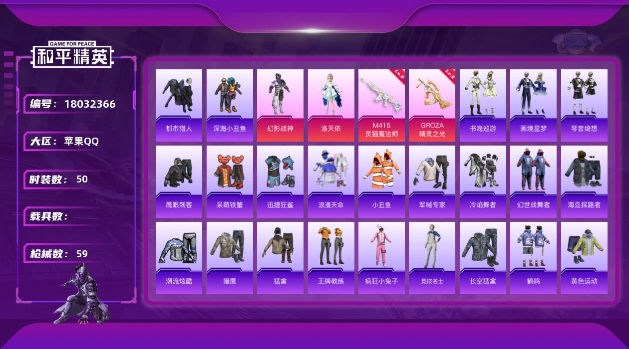 [18032366]【特价出售/店主推荐】苹果 手Q-3粉装-5特效枪-0载具-4粉色飞行器-18500热力值-3王牌印记-50套装-59枪皮