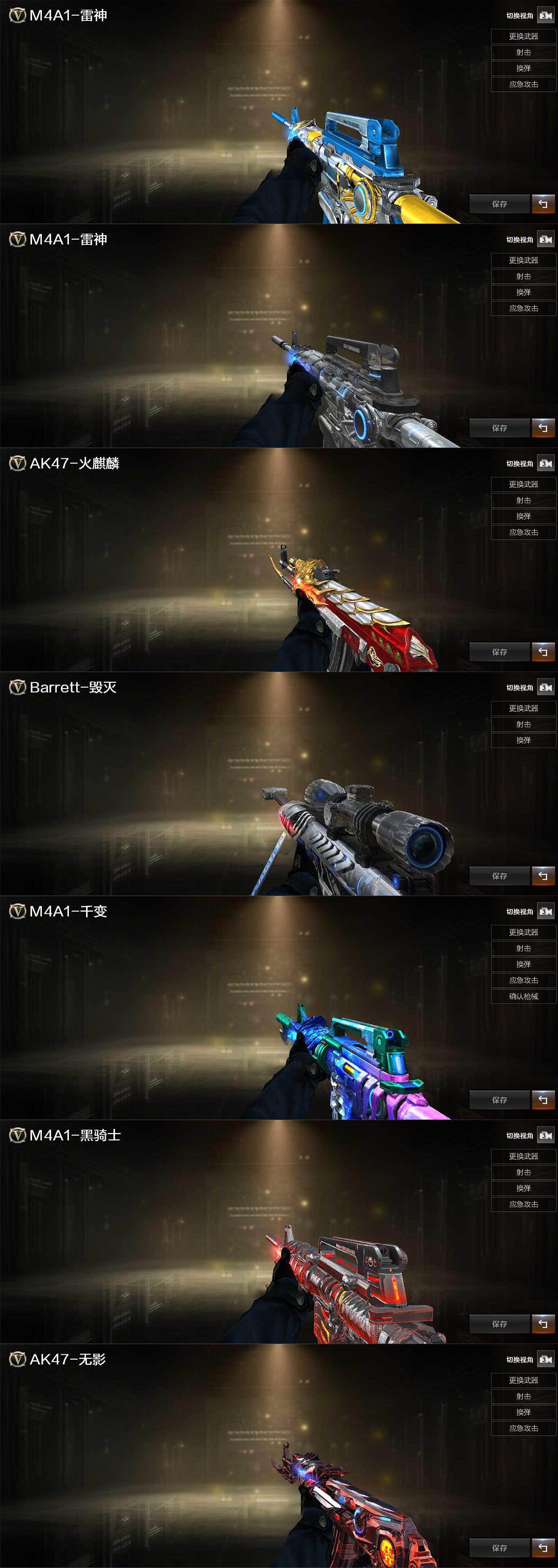 【源级武器】:魂·M4A1-雷神-化蛇,魂·雷神-神秘按键,源·青龙,M4A1-青龙-掌上穿越火线,魂·HK417-朱雀-凤灵,魂·裁决-神秘按键,魂·裁决-羽掣,源·毁灭,灵·Barrett-朱雀-炫光*2,魂·炼狱-月,魂·修罗-迷彩,魂·天神-宇航兔兔,魂·屠龙-惊鸿,魂·龙啸-秦师,魂·龙啸-玩具枪